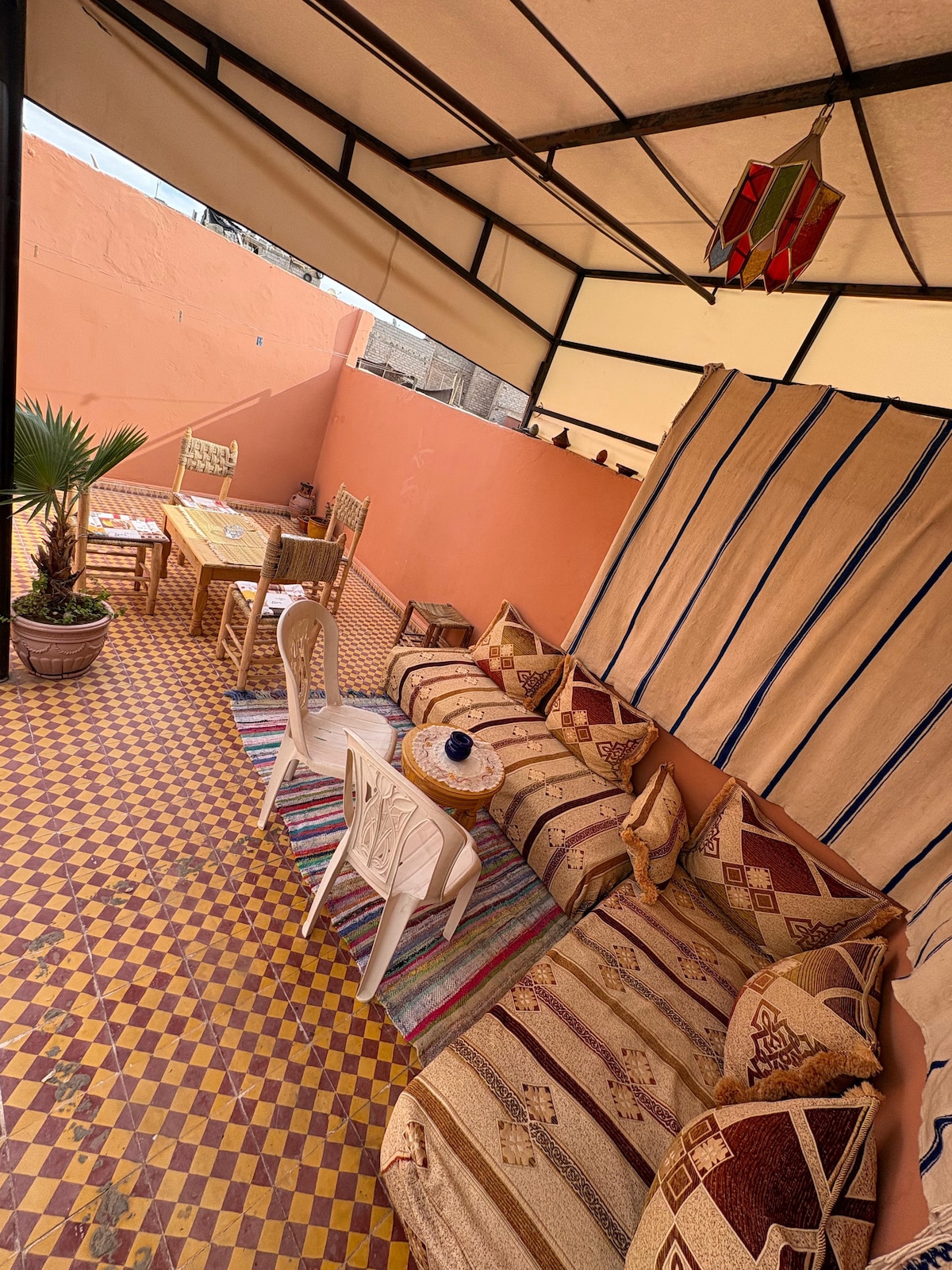 A charming place in the heart of the Médina de Marrakech, just a 5-minute walk from the famous Jemaa el-Fna square and close to Rahba Kedima. It features two comfortable bedrooms and a shared terrace for all guests, creating a warm and family-friendly atmosphere. The place is quiet and secure, perfect for couples, families, or groups of friends. I am your neighbor and live in a room on the terrace, always available to assist you and make your stay enjoyable.