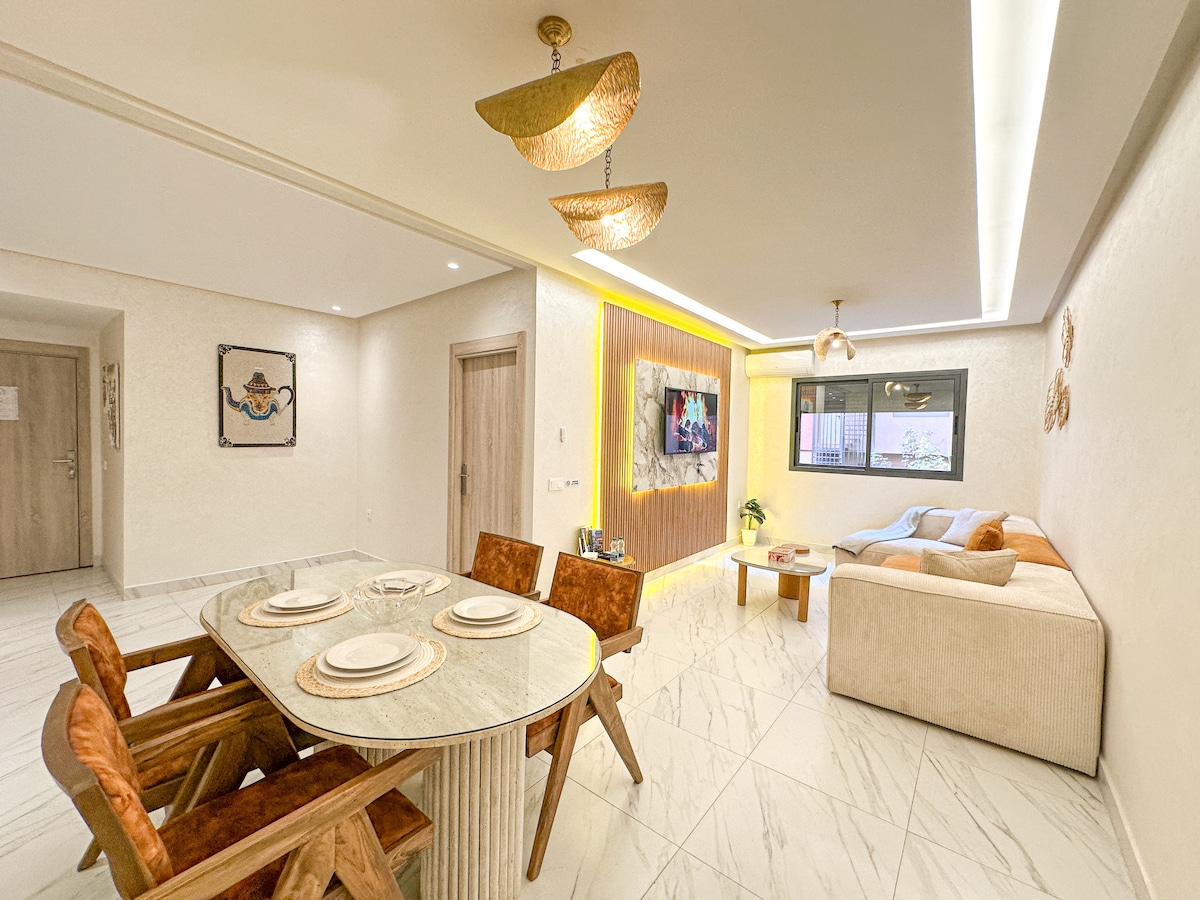 ✨ Caprice Royal: A rare and refined apartment in the heart of Hivernage, one of Marrakech’s most elegant and sought-after districts. Designed for guests who value a modern lifestyle, combining calm, comfort and vibrant urban energy. Everything is within walking distance: stylish promenades, shopping, restaurants, lounges and iconic spots, all in a safe, well-structured and pleasant environment, away from excessive hustle. An ideal place to experience Marrakech with style, day and night.