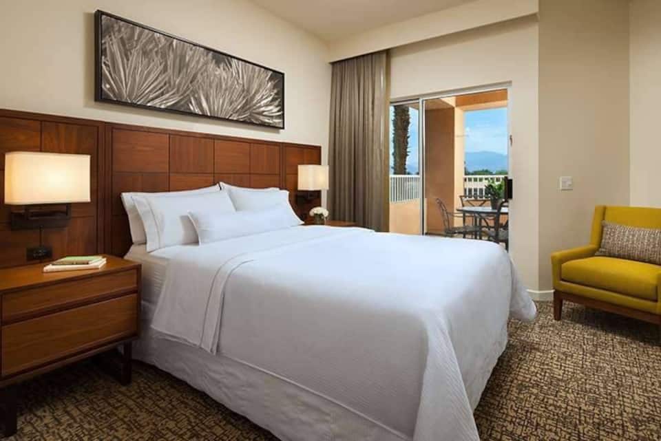 Marriott requires a 5 night Minimum Stay. As a result, you can check out any time before 10AM Tuesday. The Westin Mission Hills Resort Villas is your secure gate-guarded haven for festival excitement. This is a stylish 1 BR villa providing 560 square feet of intuitively designed living area accommodating up to four adults, while providing convenient features of home with elegant Westin® expressions: Westin Heavenly® Bed, Westin Heavenly® Bath, kitchenette, HDTVs, and washer + dryer.