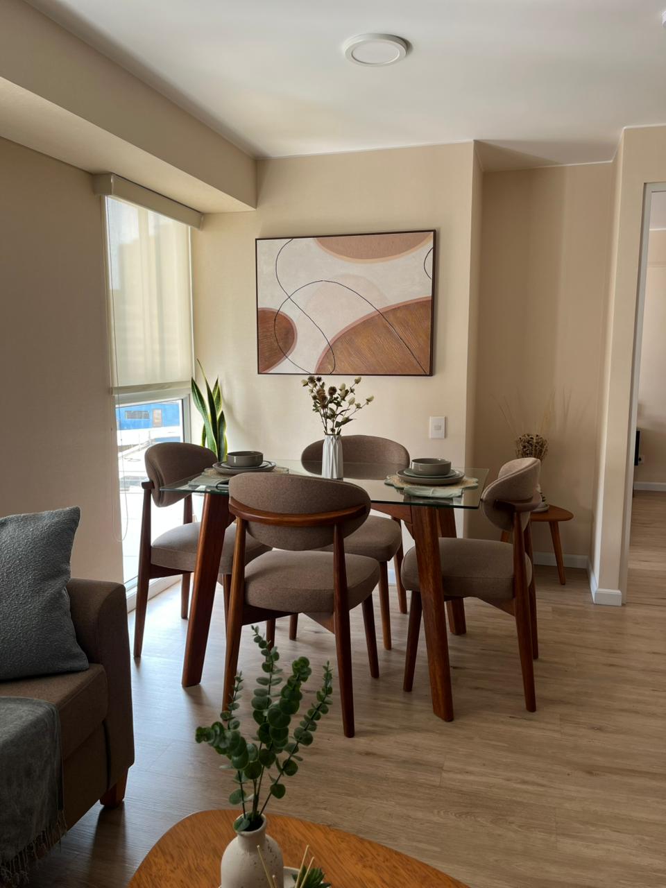 Amplio departamento, iluminación natural con terraza y vista a la ciudad, Relájate en el sillon colgante observando el atardecer, cuenta con un cuarto acogedor con closet, cocina equipada, sala, comedor y baño completo con agua caliente. Ninguna área compartida todo es de uso exclusivo del huésped, con wi-fi, Netflix. Ubicado a 4 cuadras de la Rambla Brasil, mercado Flores, avenidas principales, muy centrico, ideal para largas estadias. Recepción 24/7 - acceso al dpto es con código.
