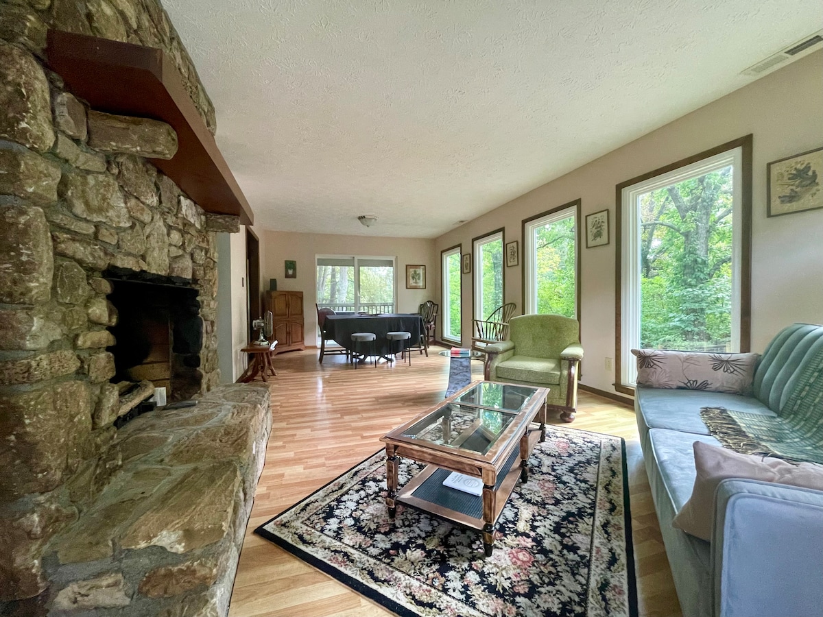 Country home can easily accommodate a large family or two small families. Three bedrooms that include 1 queen size bedroom with private master bath, 1 full size bedroom and 1 twin size bedroom with full guest bathroom. Fully equipped kitchen and dining room. Living area with TV, cable and wireless internet. Enclosed sun porch with gorgeous mountain views. Sit on the back deck and enjoy the peaceful stream. Five minutes from quaint downtown Burnsville and just 35 minutes from Asheville, NC.