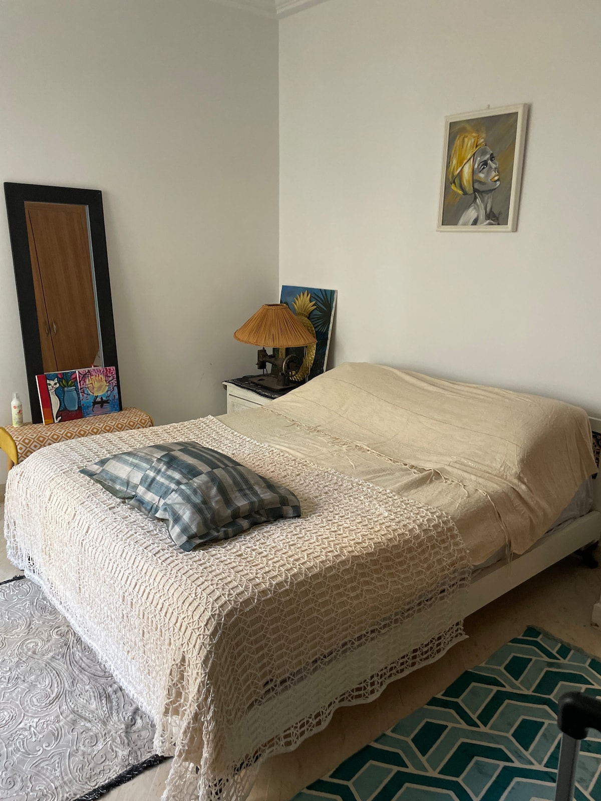 *ONE bedroom 🛌 with king size bed , work space laptop friendly and a dressing * ONE bathroom 🛁 with bath tray, candles, liquid soap, toilet roll and fresh towels * Fully equipped kitchen with breakfast essentials 🍳 , home made Tunisian 🇹🇳 spices to make delicious food 🥘 * Kitchen is opening in a spacious living room with L shape sofa where tou can enjoy watching your favorite movies 🎥 * A big balcony where you can enjoy an afternoon tea 🍵 with a view ( washing machine 🧺 is in the cornes)