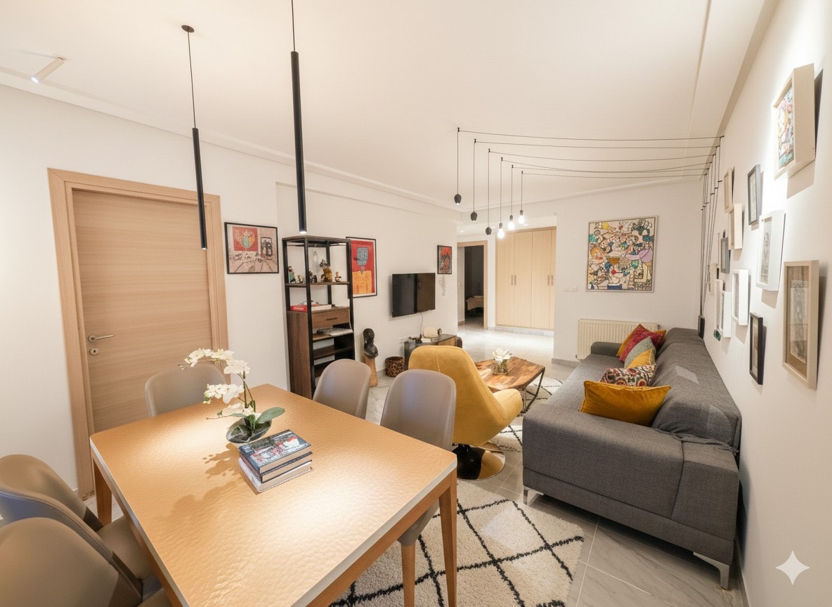 Situé dans un quartier paisible et récent, cet appartement décoré avec soin allie modernité et touches d’authenticité. Il offre un cadre tranquille tout en restant à proximité de toutes les commodités. Un appartement idéal pour un séjour unique.