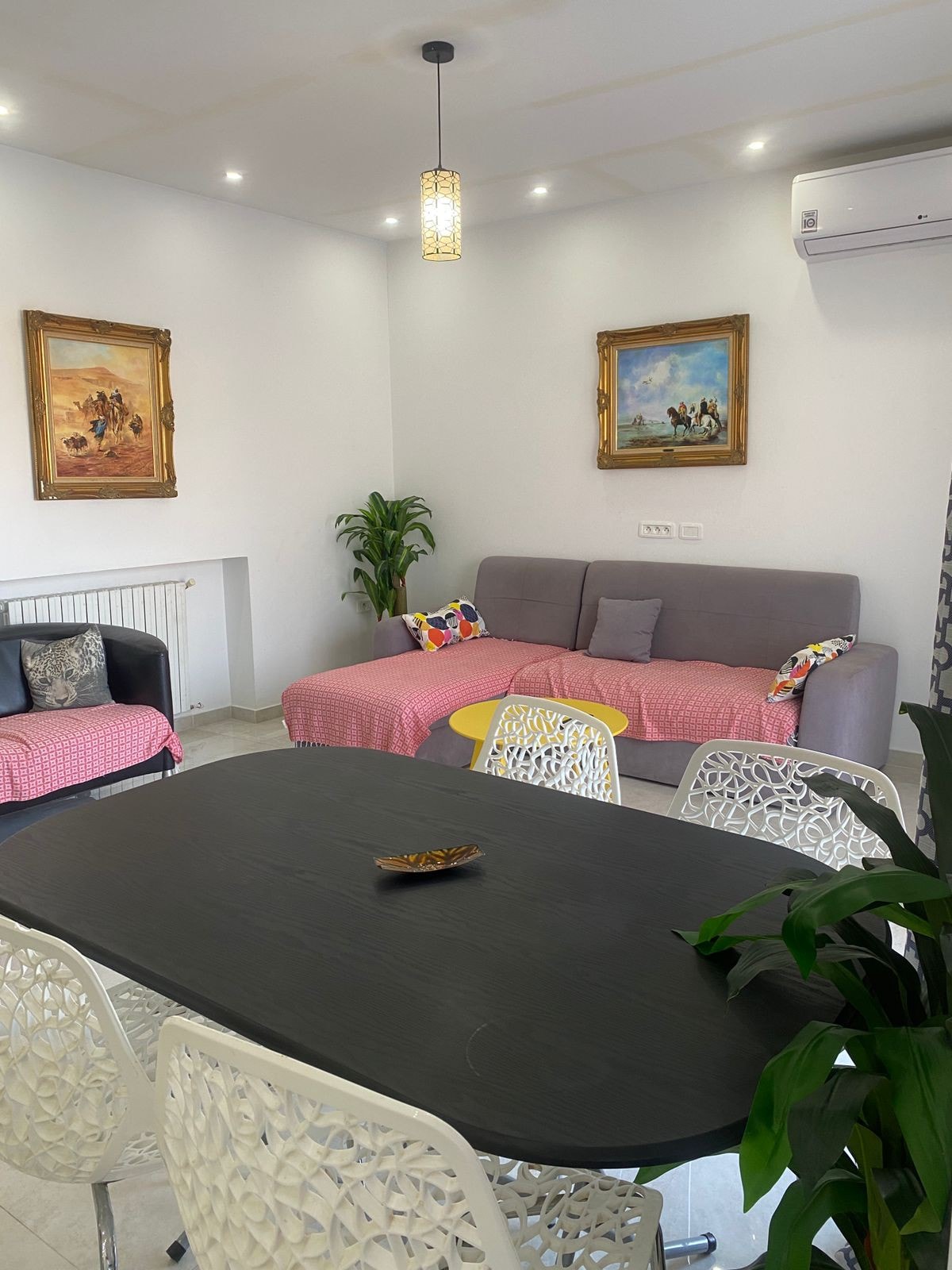 A stylish bright 3BDR flat maintained to high standards, three bedrooms and three bathrooms in a modern guarded residence in one of Tunis finest neighbourhood. It would perfectly suit a family or business visitors, the flat accommodates up to 8 (6 adults and 2 children). The flats is decorated with original vintage film posters from my very own collection featuring Tunisian, Egyptian, Lebanese and Syrian cinema dating all the way back to the early 1930s..