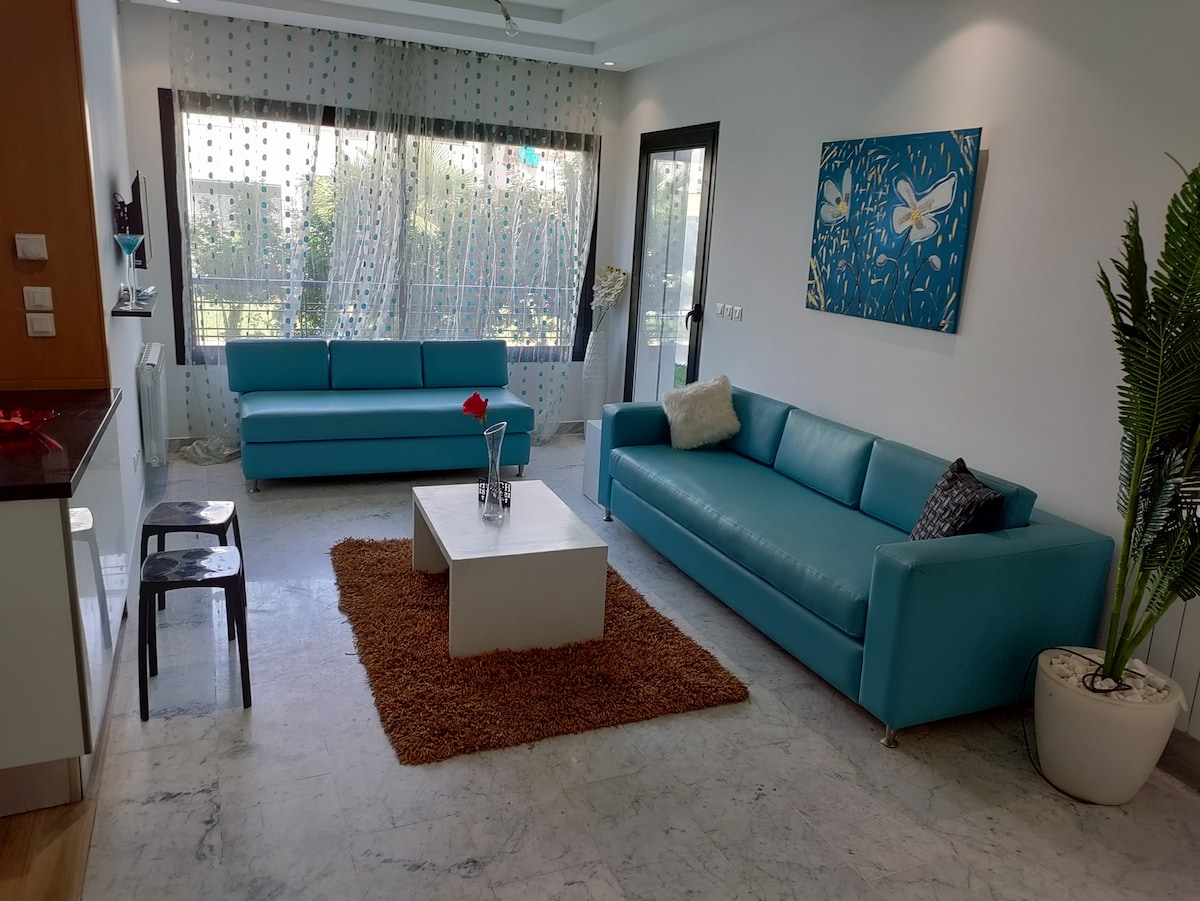 Situé à la prestigieuse ville de la Marsa à 2 km de Gammarth, Sidi Bou Said et Carthage vous pouvez profitez de votre séjour dans ce coquette appartement bien équipé et près de toutes les commodités. vous y trouverez tout ce que vous avez besoin