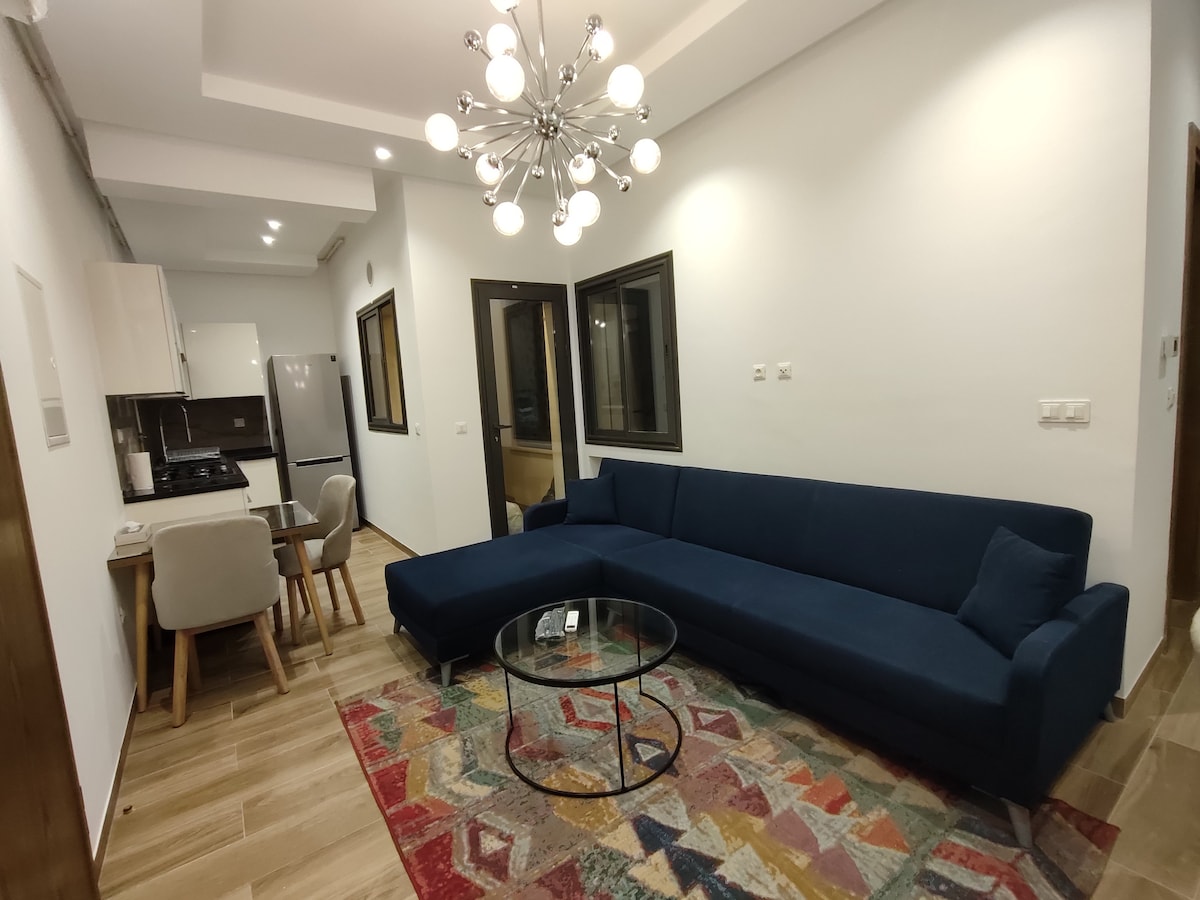 Ideally located in the heart of the Jardins de Carthage,in a luxury residence discover my sky nest apartment, richly furnished and connected, composed of a comfortable living room, a charming dining area, a beautiful cozy bedroom with double bed, storage, a fully equipped kitchen and a bathroom with all the necessary. The residence is well equipped with a rooftop swimming pool offering breathtaking views. and a fitness space available also a nice garden well secured .