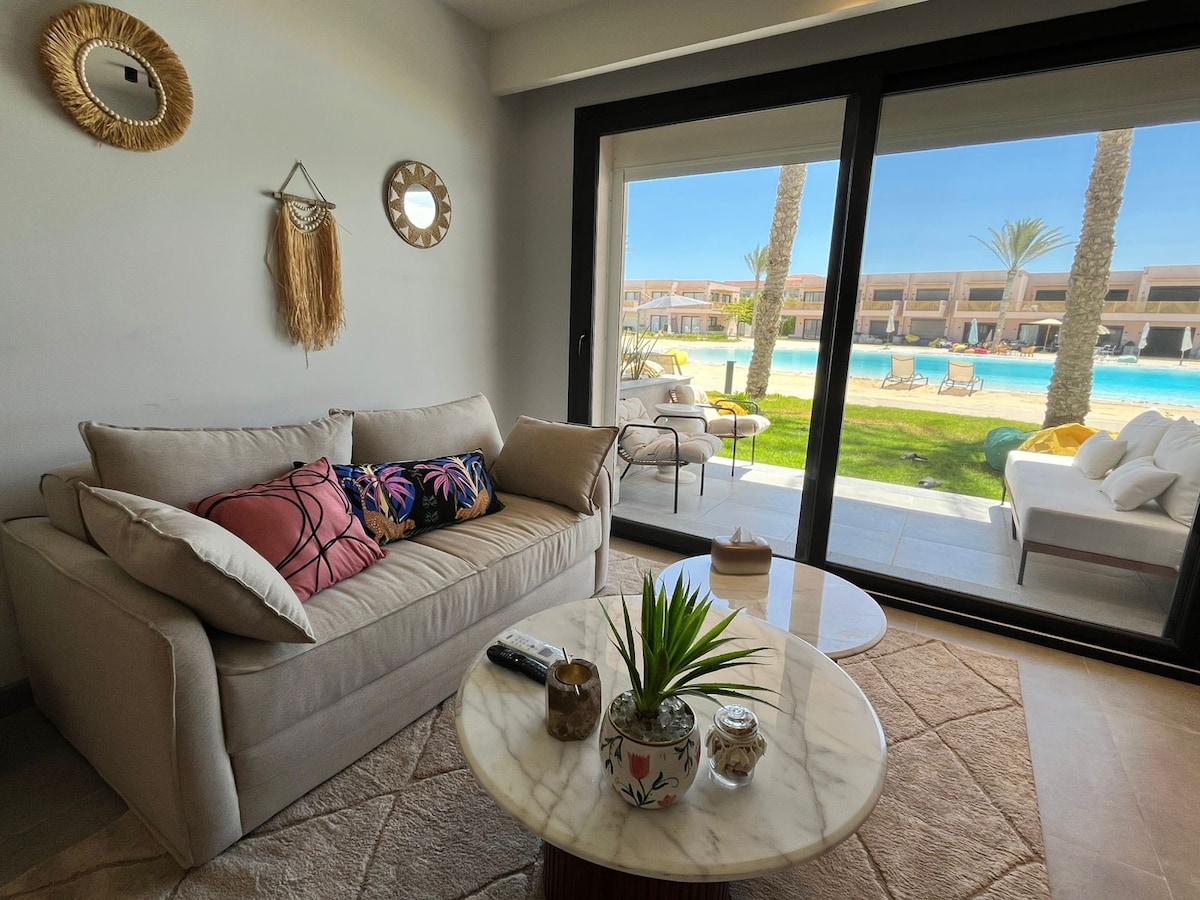 This unique place has a style all its own. A distinctive fully furnished cabana at marina west Unit specifications: - 1 bedroom - 1 bathroom - Fully equipped kitchen - All electrical appliances - Fully air-conditioned - Internet - Balcony overlooking the 3 swimming pools features: - Swimming pools - A collection of restaurants and cafes - Gym - parking - Pets allowed - 24-hour security and surveillance cameras Location : - Minutes from sea - Minutes from the 3 swimming pools
