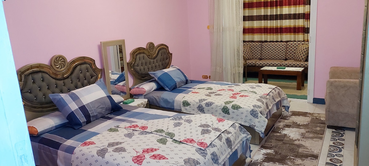 5 minutes walk to beach, restaurants , Cafes 🏖️ Fancy and modern decorated 2 bedrooms appartment in Alexandria in sough after prestigious area / equipped apt : washer,3 AC in all rooms/ living room ,3TV flat screen in each room, microwave , fridge and hot shower Married couples only exception for European and North Americans .respectful singles only IDs / marriage certificate required before check in or upon check in prestigious building is 5 minutes walk to sea (No sea view )