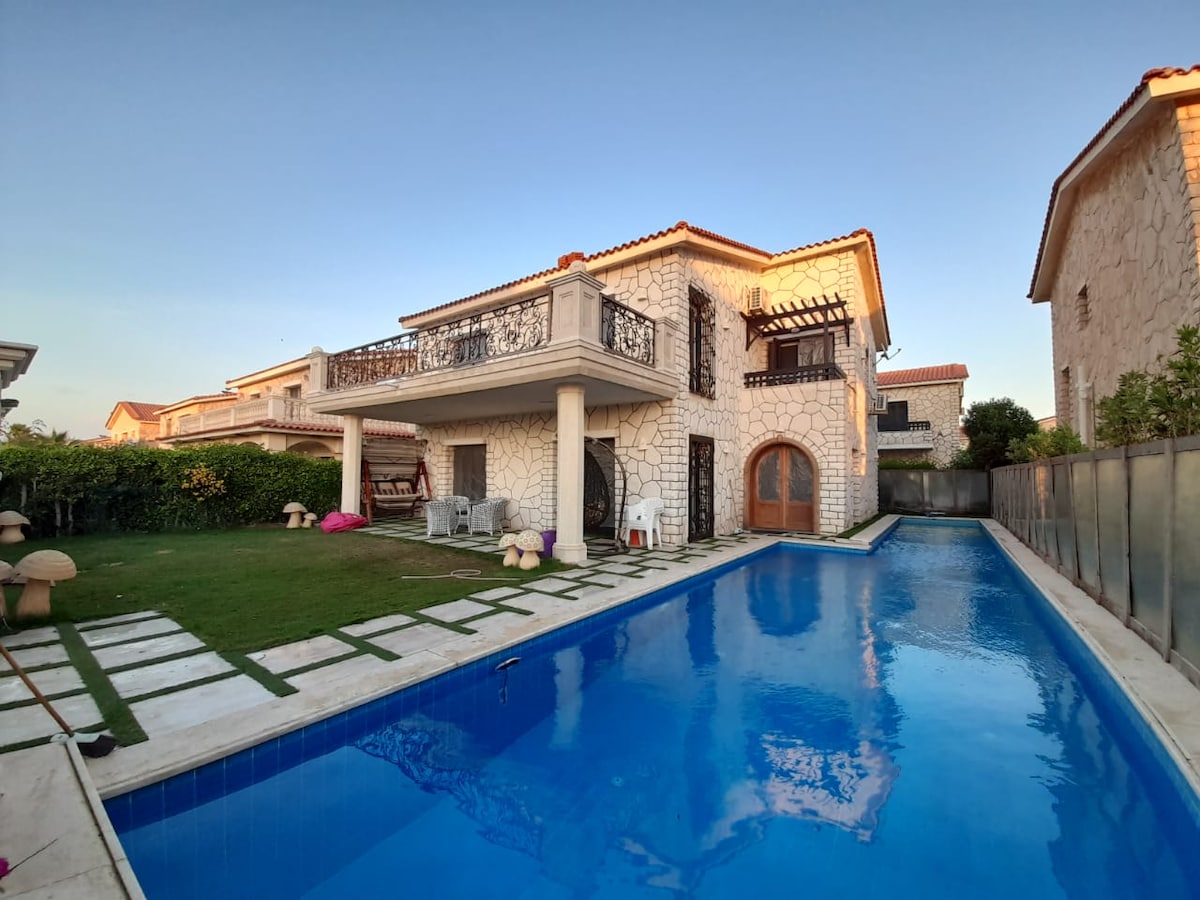 فيلا مارينا 7الساحل الشمالي العلمين فيلا برايفت بول5 غرف نوم مكيف بالكمال 5 حمام بعد مسافة 2 كيلومترات من بورتو مارينا العلمين وهو مكان إقامة يوفر تراسا وشرفه وإطلالات على بول اكمان يبعد مكان الإقامة مسافة 2 كم من متحف العلمين و10 كم من المقبرة العسكرية الألمانية التي يعود تاريخها إلى الحرب العالمية الثانية Guests will have a beach access fo the private and the public beaches but there is an additional fees to access it.