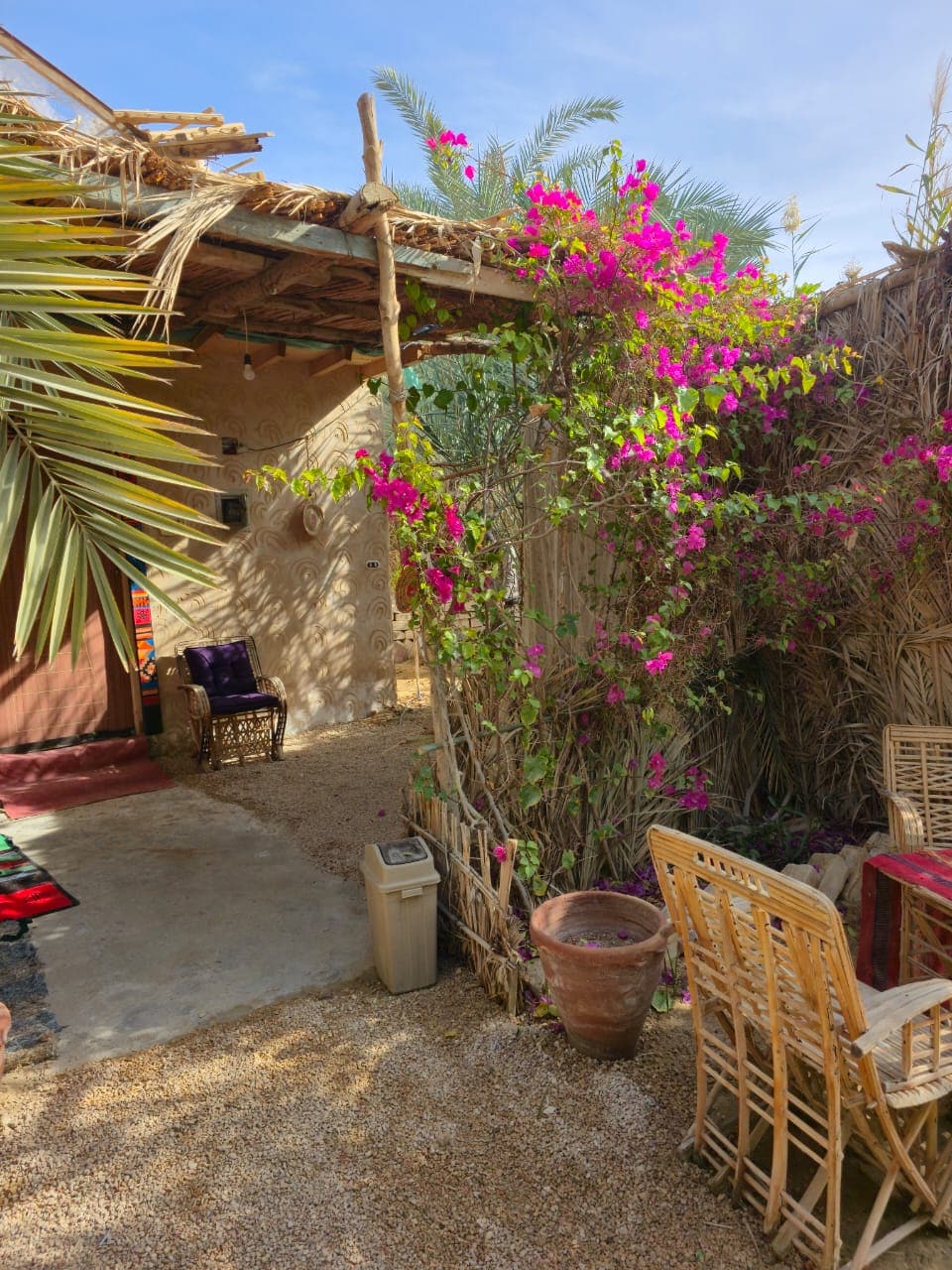 Looking for a serene retreat in Siwa? Welcome to your hidden desert gem nestled among palm trees. Warm desert days and cool nights are perfectly balanced here with a custom designed Siwan shaped pool for daytime dips and a cozy fire pit for evenings. You can enjoy stargazing and a view of the date palm forest from our spacious roof deck. For a unique culinary experience, our house chef can prepare and deliver delicious Siwan food right to your door. Embrace nature and unwind with us!
