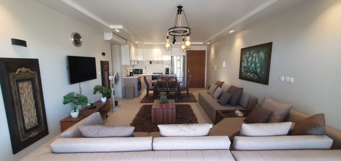 Forget your worries in this spacious and serene space. Lovely place to escape the heat and enjoy the sea and the cool breeze. It can accomodate for a big family with 2 beds in each room. Big dinning table and living space in addition to the outdoor bedouin style patio seating. Two bathrooms with showers to accomodate for everyone. This is a brand new place very close to the beach and can walk to the supermarket, however a car is needed to go to downtown.