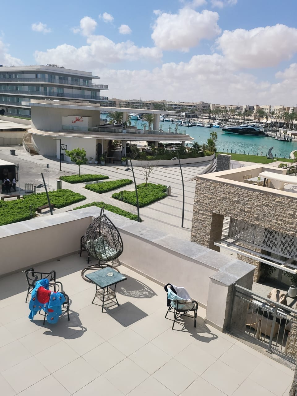 Take it easy at this unique and tranquil getaway overlooking the Mediterranean . one bedroom studio with open kitchen space and large terrace with sea view in Greek style Bianchi sidi abdelrahman resort.