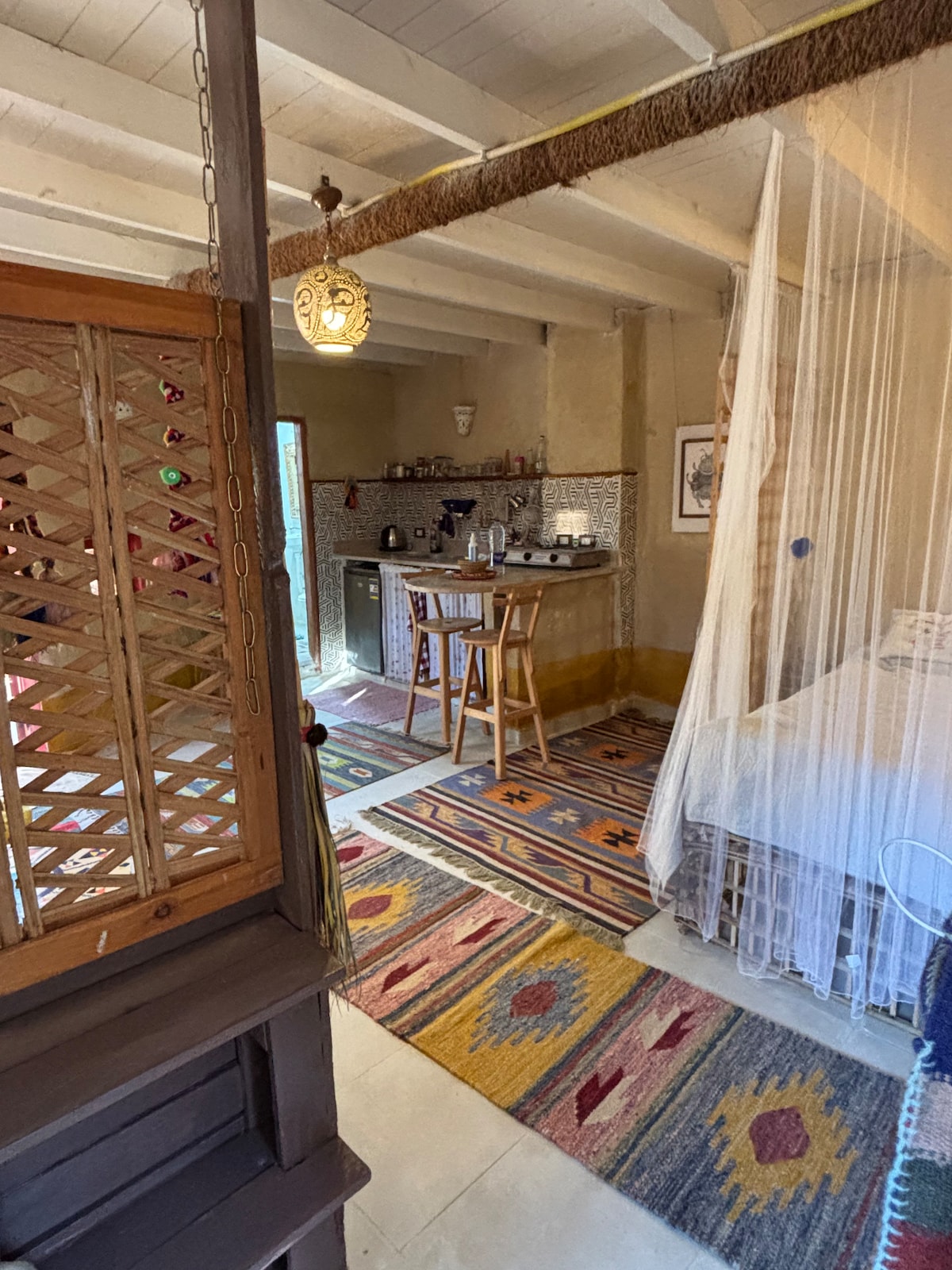 Looking for a serene retreat in Siwa? Welcome to your hidden desert gem nestled among palm trees. Warm desert days and cool nights are perfectly balanced here with a custom designed Siwan shaped pool for daytime dips and a cozy fire pit for evenings. You can enjoy stargazing and a view of the date palm forest from our spacious roof deck. For a unique culinary experience, our house chef can prepare and deliver delicious Siwan food right to your door. Embrace nature and unwind with us!