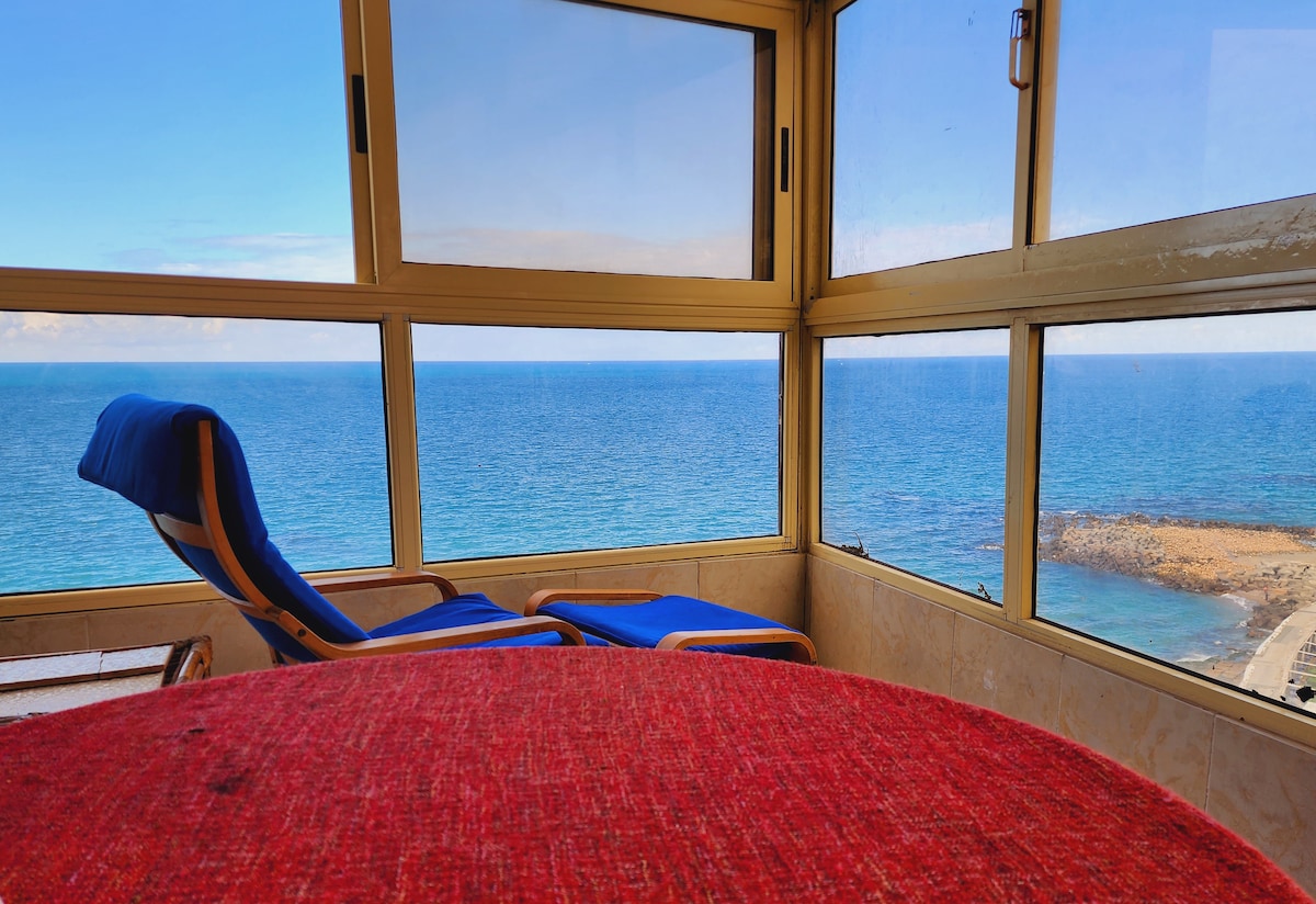 Wake up to the sight and cool breeze of the Mediterranean. This unique luxurious coastal apartment with it's boho chic laid-back style, is all about comfort. Enjoy the majestic open view of the sea &the Montaza royal gardens. Our unique spacious place has all the amenities you are looking for, restaurants and cafes are within a walking distance &affordable beach access. We are offering you our private place to enjoy during the time we are forced to leave it, hoping you like it as much as we do.