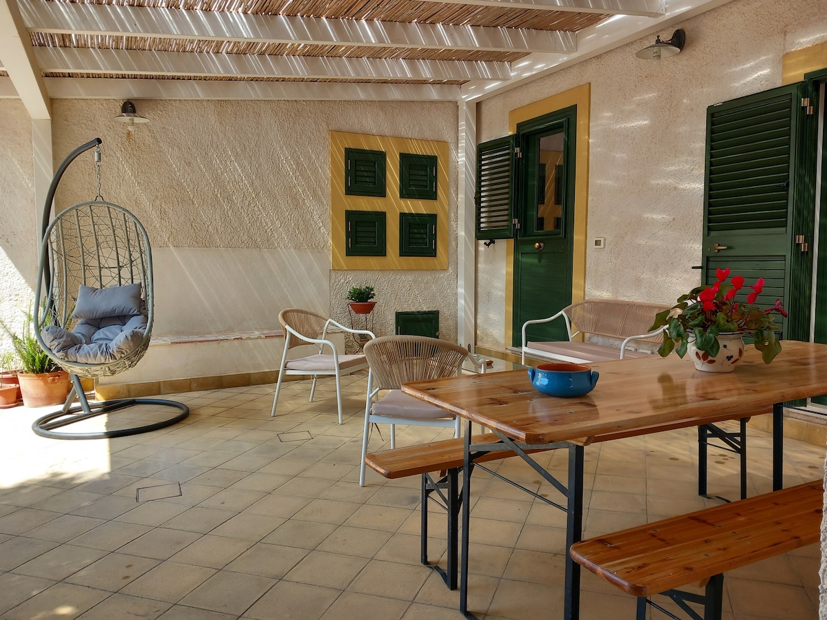EN: Brand new stylish and modern apartment with 2 bathrooms and 2 bedrooms, terrace with outside sitting and dining area, and private rooftop with unique view on Motia Island and Lo stagnone. Very close to Lo Stagnone kite schools, Le Saline di Marsala and 15 minutes from Trapani airport. unique place has a style all its own. Free parking inside the Villa. IT: Nuovissimo moderno appartamento con vista unica sullo Stagnone e Motia con 2 bagni, 2 camere, 2 terrazzi e parcheggio interno.