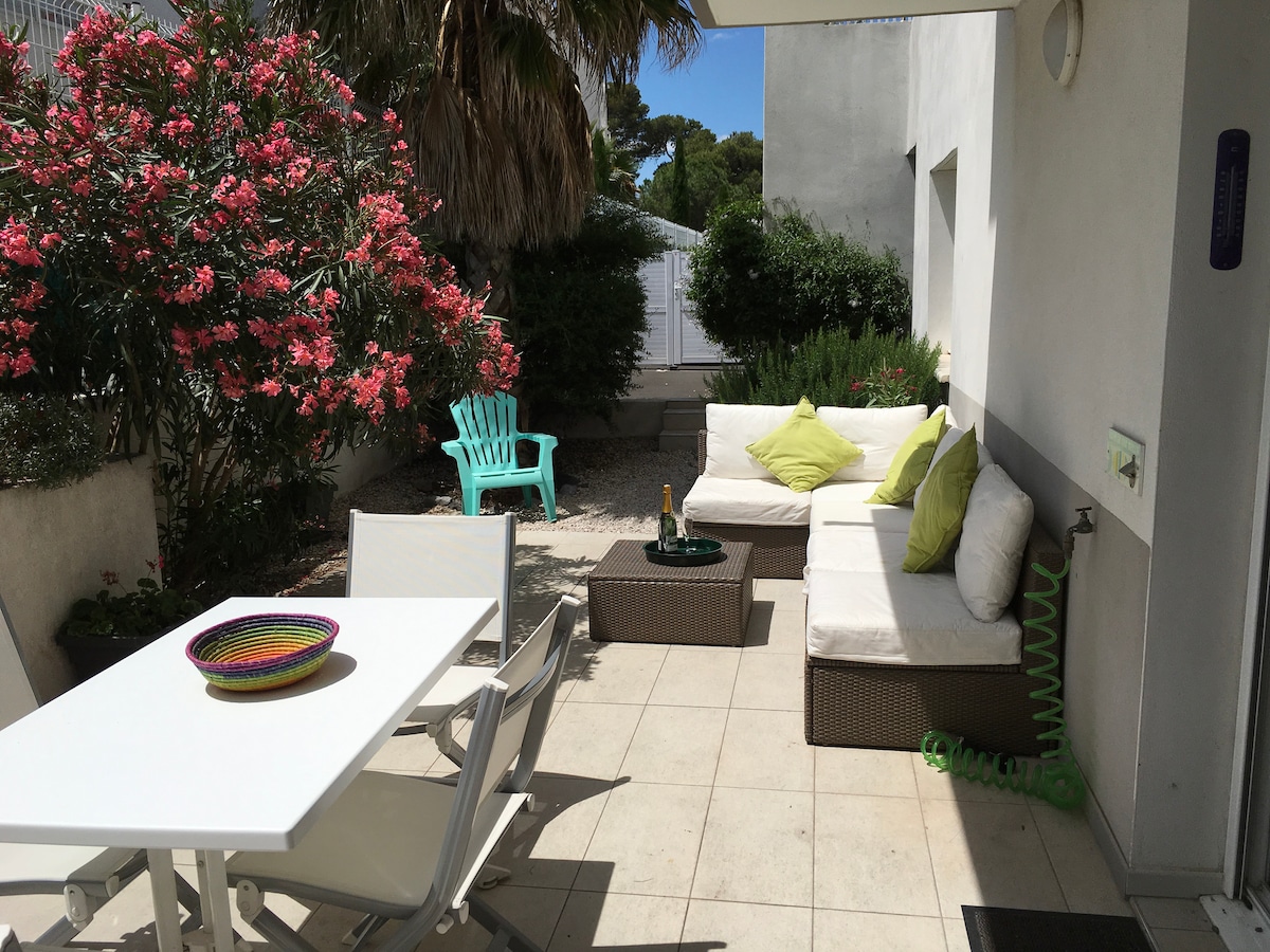 Le Terracotta。2间卧室,露台,游泳池,停车场