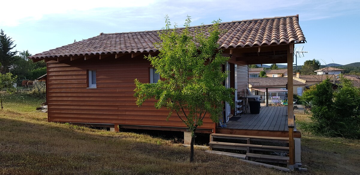 Je vous propose ce magnifique chalet neuf de 42m², avec 18m² de terrasse et un petit espace vert. Agréable séjour cuisine, clim réversible, 1 chambre, 1 WC, 1 salle de bain Couchage de 2 à 5 personnes (1 lit double, 1 clic-clac et 1 lit d’appoint d’une personne) + lit bébé, pot et baignoire bébé. Le linge de lit et de bain est fourni. Situé dans le biterrois, a 35km des plages, 20km d’une cure thermale, 5km d’un supermarché et petits commerces au village. Nous n’acceptons pas les animaux.