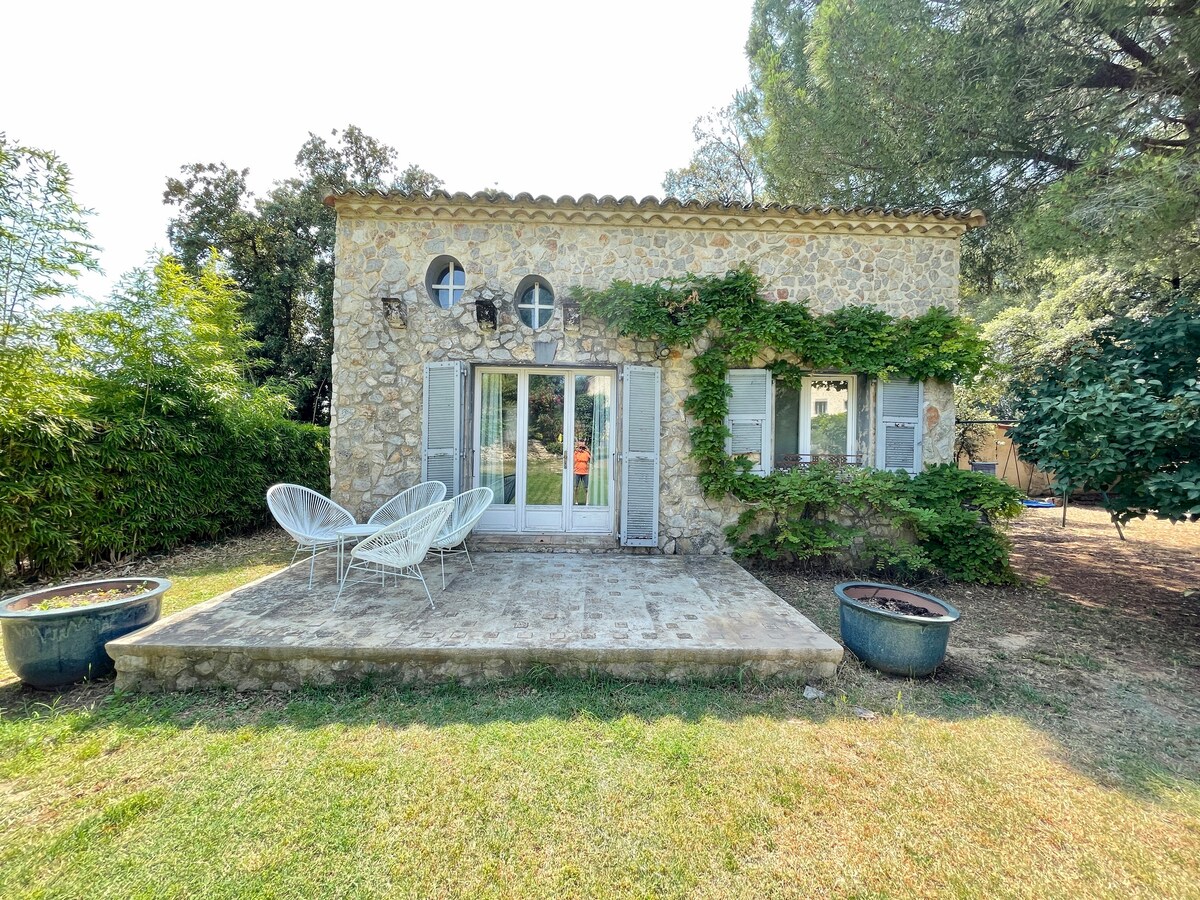 Ni vraiment une cabane, ni totalement un vrai chalet…L'originalité à 15mns du centre-ville de Montpellier...Un mazet en pierre avec un intérieur en bois de chalet de montagne….Un jardin de 700m2 pour les enfants….Le cocooning à l"état pur... Situé dans le centre de Vendargues, à 15 mns en voiture de la Place de la Comédie, grâce à l’entrée/sortie d’autoroute toute proche…Visitez la région de Montpellier avec une multitude de découvertes à 1h maximum de route…