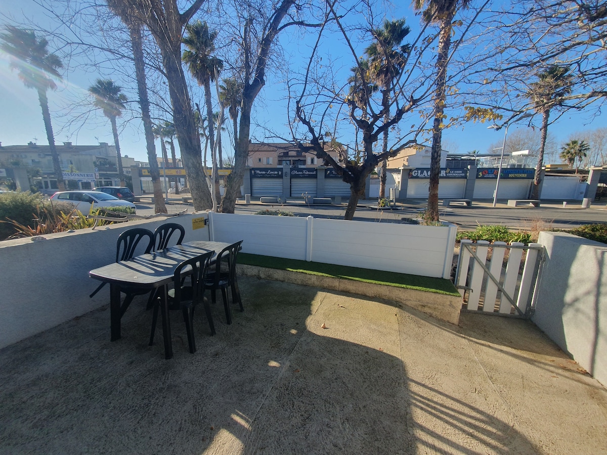 A 2 km du centre du Grau d'Agde et à 800m de la plage (piste cyclable), petite villa (35m2) F2 indépendante située dans une propriété familiale. Secteur camping Les Sablettes logement composé de _pièce à vivre avec cuisine équipée, convertible en 140 cm (idéal enfant), table et chaises _ chambre avec lit en 140 cm, télé. _ salle de bain attenante à la chambre avec douche italienne _ Jardin 80m2 clos avec place parking et terrasse équipée. -clim et wifi - serviettes de bain et draps fournis