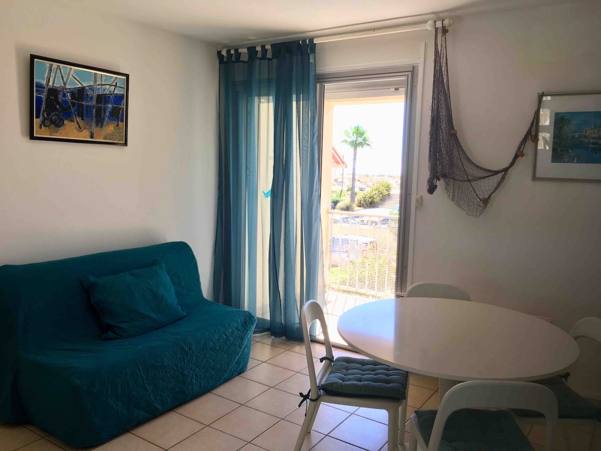 Logement de 31 M2 avec terrasse de 8 M2 , à 50 m de la plage ,avec belle vue latérale de la mer. Parfait pour les couples, familles avec enfants .Il fera le bonheur des amateurs de la plage ,des amoureux de la nature en arrière saison, piste cyclable pour ballades vélo.Parking privé sécurisé .Proche de sète et du cap d'agde.ANIMAUX REFUSES.Draps,serviettes de toilette, torchons non fournis par le propriétaire. Sèche cheveux fourni. Lit parapluie ,chaise haute,baignoire bébé gratuitement.