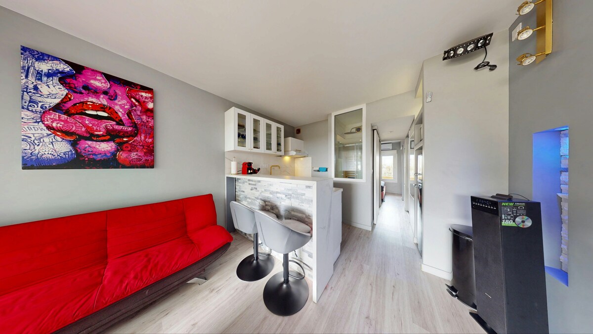 ⛵ Enjoy Sète's climate and atmosphere by staying in this charming apartment. 🐟 On the third floor of a recent building with elevator and secure basement parking. This bright apartment features a large living room with open kitchen, a bedroom with queen-size bed and storage space, a loggia, balcony, shower and separate toilet. Located just a five-minute walk from the town center and buses to the beach. In the immediate surroundings: supermarket, pharmacy and restaurants. Enjoy your stay!