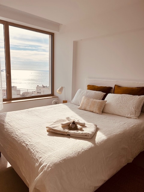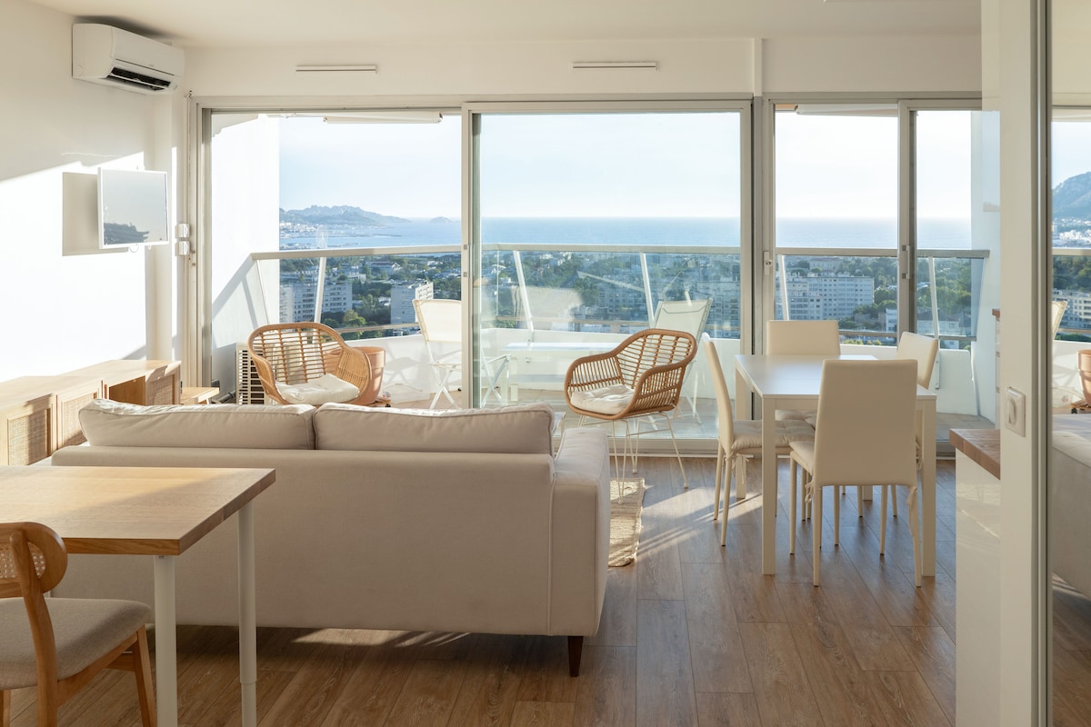 Perched high above the ground floor and overlooking the bay of Marseille, this sophisticated and cozy 1 bedroom studio apartment in the center of the city provides the perfect blend of urban convenience and natural beauty. As Marseille apartments go, this generous, air-conditioned space is at the summit of Airbnb options in the region, offering all-day sunlight and endless sea and mountain views.