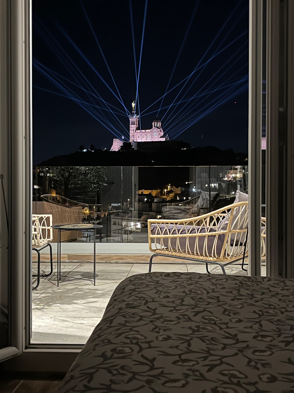 The apartment « Marsiho » enjoys the most beautiful view of Marseille, 180 degrees over the Vieux Port, facing Notre Dame de la Garde, and a beautiful light with its south-facing wall of windows. It is fully air-conditioned and has been refurbished by an architect with high quality materials and a selection of furniture in a mediterranean spirit.