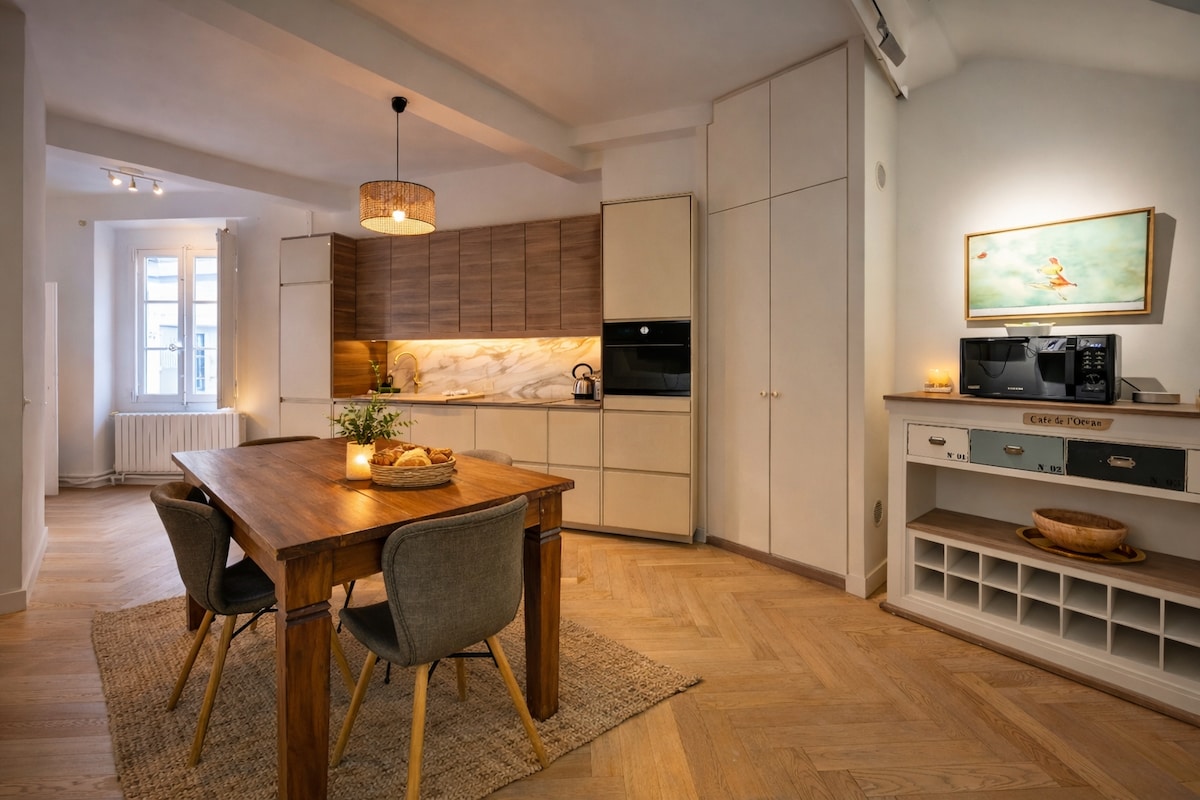 Entièrement rénové, ce duplex de 115m2 est idéalement situé dans le cœur de la veille ville de La Ciotat. À proximité des commerces et des restaurants, vous vivrez au coeur de l'ambiance de cette célèbre ville provençale à quelques pas des plus belles calanques de La Ciotat, 15 min à pied. Les plages à seulement 5min à pied. Pour vous offrir un meilleur confort, vous pourrez profiter de la climatisation, du WIFI et deux places de parking dans un sous terrain sécurisé gratuit à 5 min.