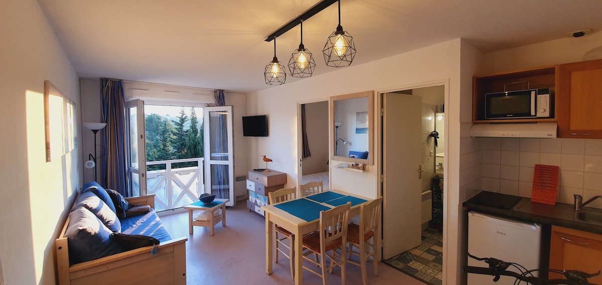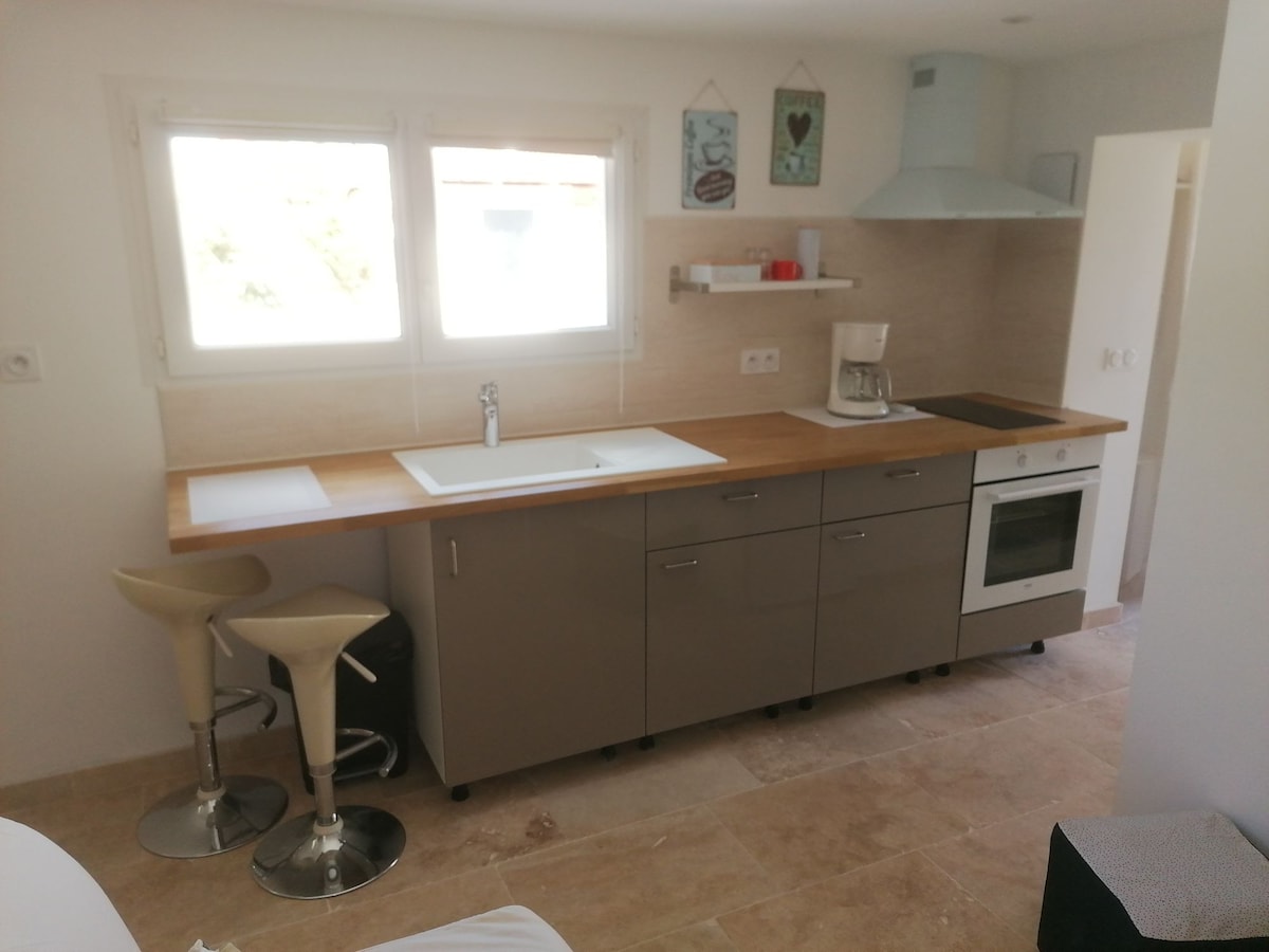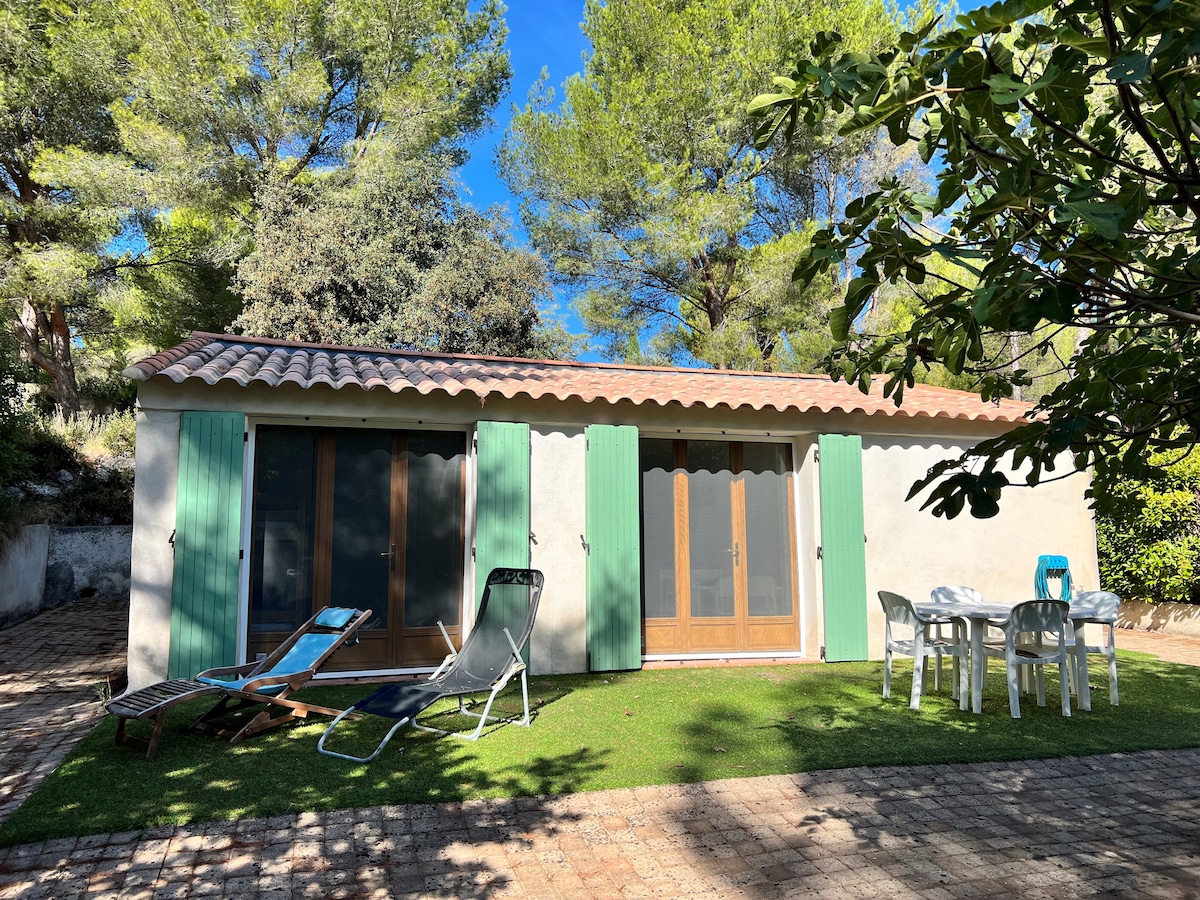 Proche de Cassis Studio de 30 m2 indépendant dans villa proche du centre ville . Terrasse privative avec accès à la piscine et non chauffée ( couverture solaire). Refait à neuf avec vue sur jardin et au calme. Canapé convertible avec matelas Bultex; cuisine aménagée (four, plaques de cuisson, frigo- congélateur, lave vaisselle, Machine à café Nespresso, grille pain, bouilloire ...). Salle de bains avec douche.