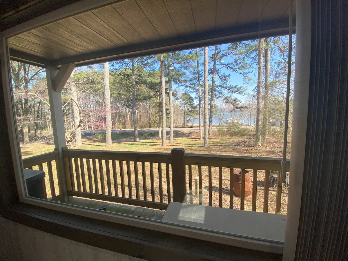 I designed this home to have 2 separate living spaces with private entrances on opposite sides of the house. The front is the vacation rental entrance accessing the entire first/lower level. My entrance is on the back side of the property. My family owns part of Lake Shore Island located on Guntersville Lake. There are 5 houses on our property scattered over 8 acres. My home and vacation rental is about 3 football fields from the shore, up the hill, providing beautiful views of the lake.