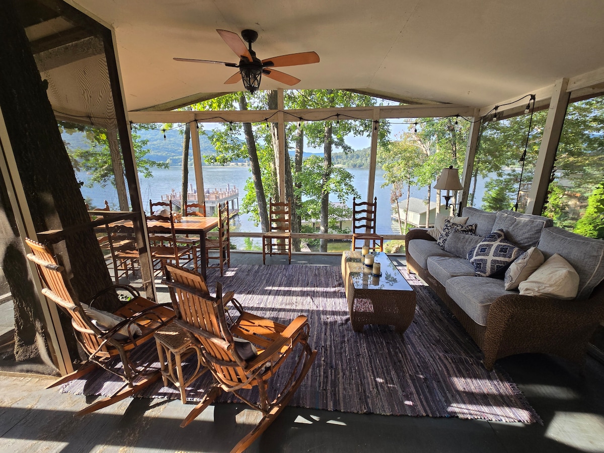3 bedroom, 2 bath cottage with screened in back porch and great view of the lake. Open floor plan with views of the lake from the living room, kitchen, and two bedrooms. Incredible outdoor fireplace that is perfect for night time gatherings. Large front and back yard for outdoor activities. Fully furnished and beautifully decorated. We recently purchased this beautiful lake house for our family to enjoy and to share with others as the previous owners did over the past several years.