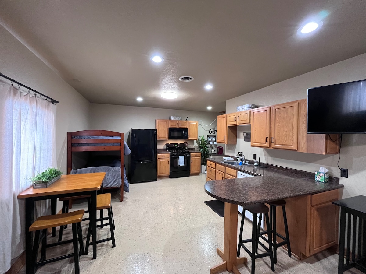 Escape to Wolfe Ranch and enjoy a peaceful stay in our private one-room cabin near Marshalltown and Highway 30. Tucked away on our working horse ranch, the cabin features a full kitchen, private bathroom, and private laundry with scenic countryside views. Perfect for couples or small families, with a trundle bed for additional guests. Horses and our Whiskers & Manes Cat Lounge are on-site, and ranch visits may be arranged with staff.