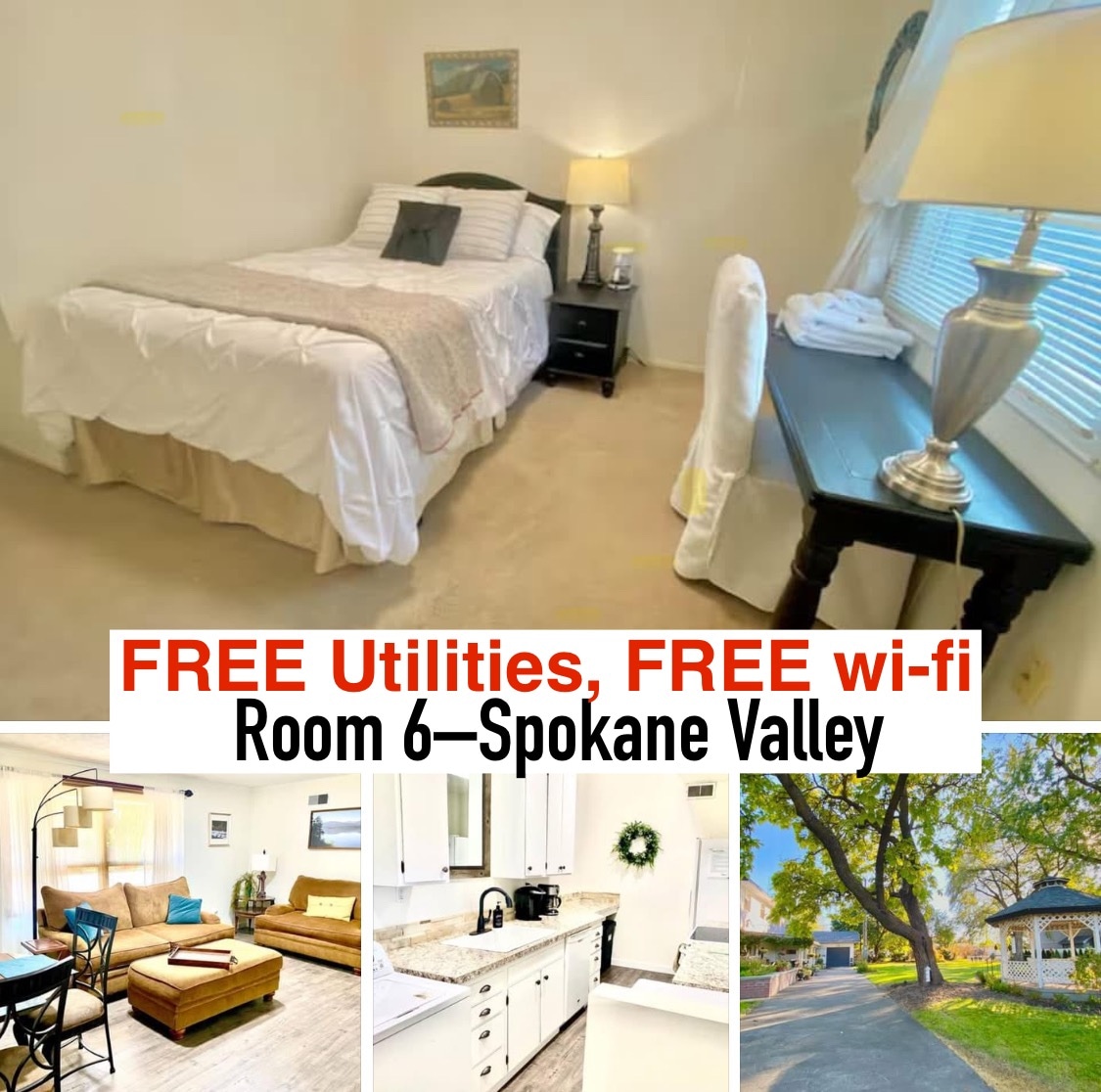 1 bedroom in-law apartment. Bedroom features a newly updated bathroom, king size bed and small futon. The front room has a desk and small kitchenette. The apartment has it's own entrance and is closed off from the rest of the house. There are no common areas besides the front yard. The house is located 10 to 15 minutes east of downtown Spokane.