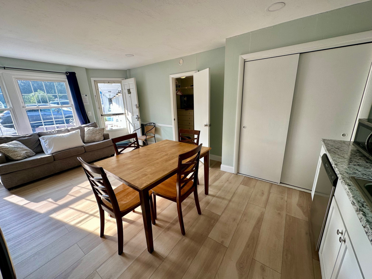 Stay in our cozy, dog-friendly Village King Suites near Jones Pond, behind our Falmouth MA inn. Each 375-square-foot suite features a separate king bedroom, living area, walk-in shower, and modern amenities like two Smart TVs, mini-fridge, and free WiFi. Accommodates up to three guests with a roll-away bed. Perfect for guests traveling with pets!