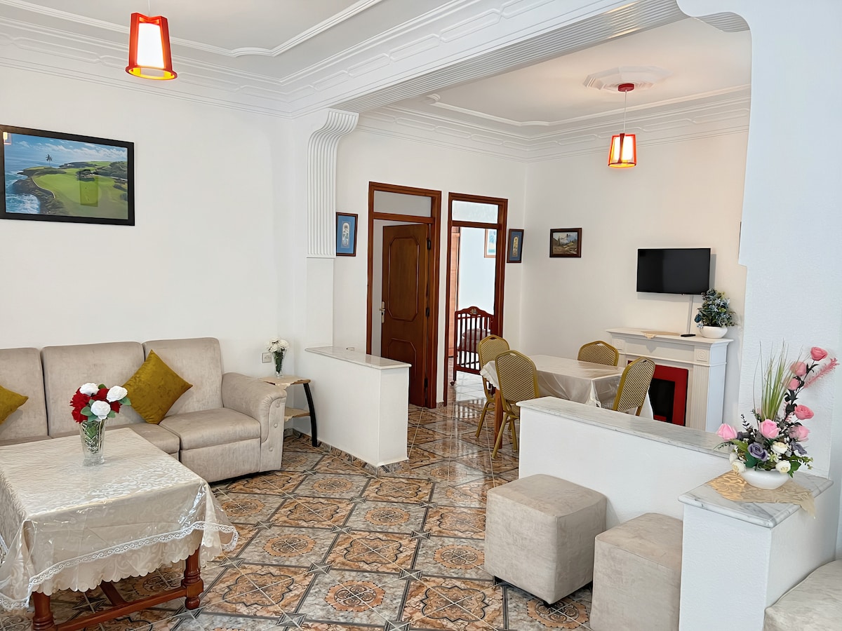 ✨L'appartement Panoramique à les jardins bleus se caractérise par son design à la fois moderne et élégant, chaque élément étant soigneusement conçu pour vous garantir une expérience sans pareille ✨Son emplacement central ✅ Appartement avec vue panoramique sur la mer et à proximité de : ✅ 1 min de la plage de Martil 🏖 et sa fameuses corniche ✅ 5 min de la Plage de Cabo Negro 🏝 ✅ 4 min de Ikea et KFC 🍗 ✅ 6 min de Marjane et McDonald's 🍟 ✅ 1 min restaurants cafés, commerces