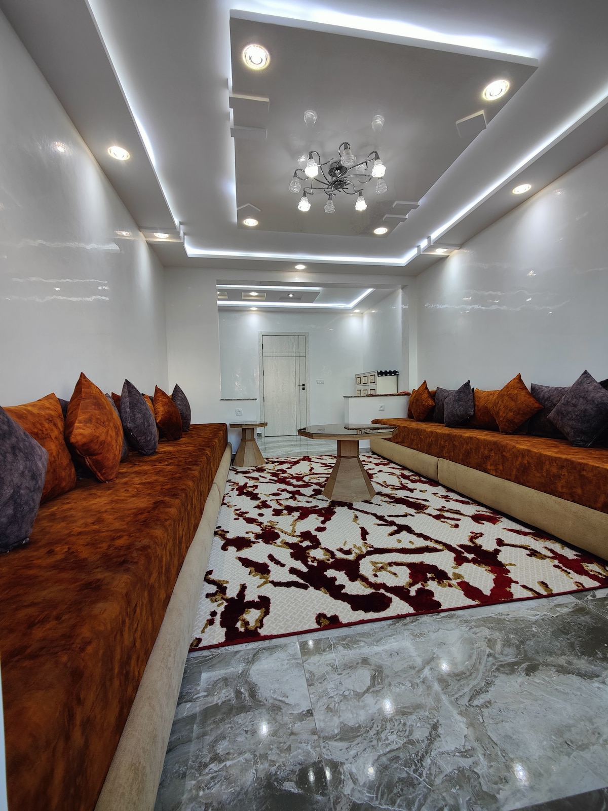 ✨L'appartement Panoramique à les jardins bleus se caractérise par son design à la fois moderne et élégant, chaque élément étant soigneusement conçu pour vous garantir une expérience sans pareille ✨Son emplacement central ✅ Appartement avec vue panoramique sur la mer et à proximité de : ✅ 1 min de la plage de Martil 🏖 et sa fameuses corniche ✅ 5 min de la Plage de Cabo Negro 🏝 ✅ 4 min de Ikea et KFC 🍗 ✅ 6 min de Marjane et McDonald's 🍟 ✅ 1 min restaurants cafés, commerces