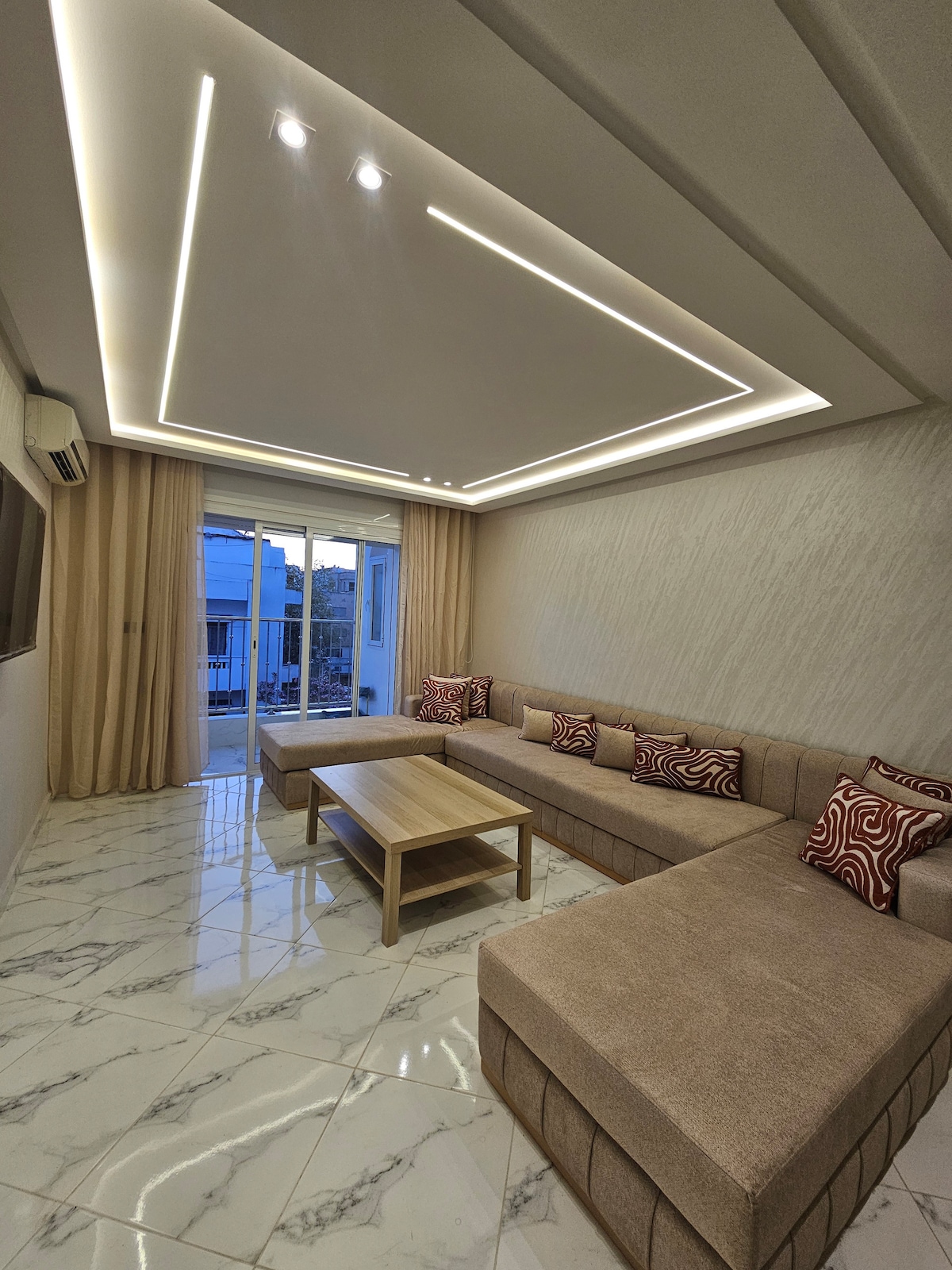 ✨L'appartement Panoramique à les jardins bleus se caractérise par son design à la fois moderne et élégant, chaque élément étant soigneusement conçu pour vous garantir une expérience sans pareille ✨Son emplacement central ✅ Appartement avec vue panoramique sur la mer et à proximité de : ✅ 1 min de la plage de Martil 🏖 et sa fameuses corniche ✅ 5 min de la Plage de Cabo Negro 🏝 ✅ 4 min de Ikea et KFC 🍗 ✅ 6 min de Marjane et McDonald's 🍟 ✅ 1 min restaurants cafés, commerces