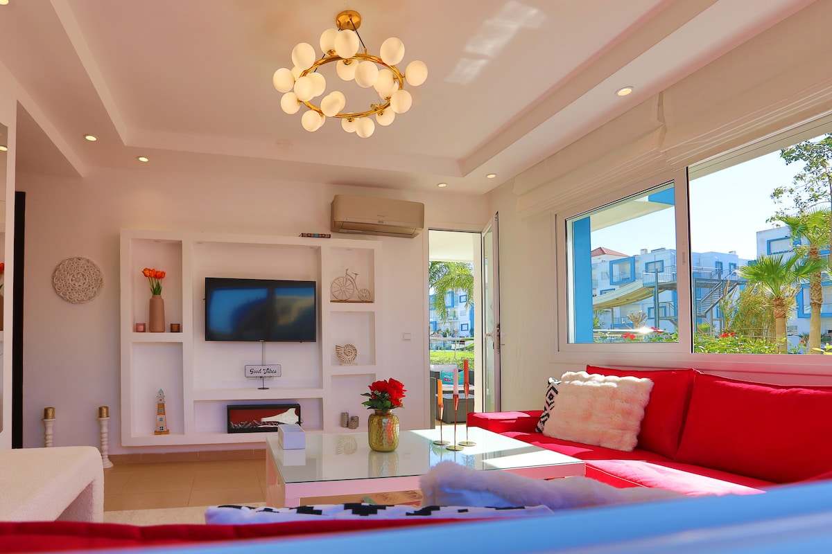 Diviértete con toda la familia en este alojamiento con estilo. Apartamento elegante a solo 5 min de la playa. Ideal para familias o parejas. 2 dormitorios, cocina equipada, 1 baño completo y un aseo. Terraza privada, acceso a 3 piscinas y jardines. Todo está pensado para tu comodidad y descanso. Decorado con mimo y calidad. Ubicación inmejorable para disfrutar de Martil con confort y estilo.
