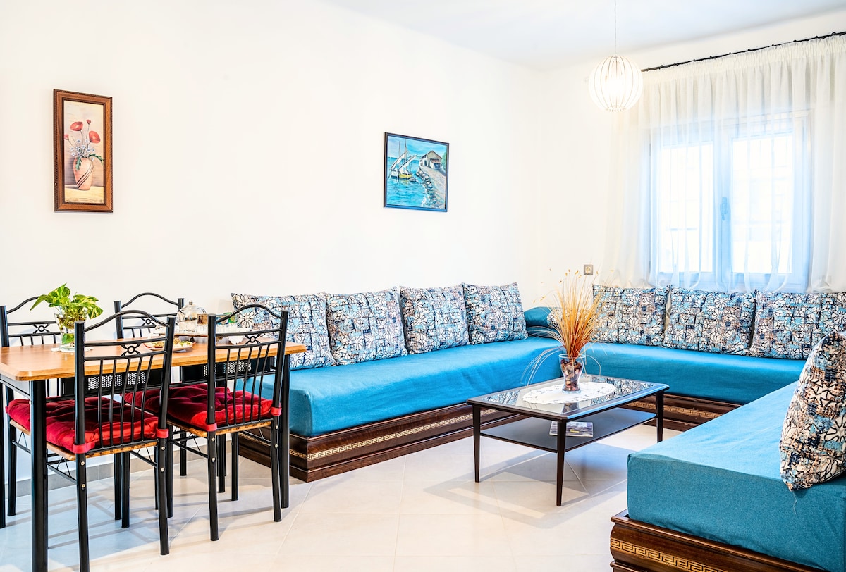 🏡 Welcome to MITTA HOUSE A brand-new, elegant, and bright apartment located on the ground floor of a secure and peaceful residence in Cabo Negro. Perfect for couples, families, or friends looking for a relaxing getaway. The apartment is less than one month old and features a private garden with direct access and view to the pool – ideal for enjoying the outdoors in comfort.