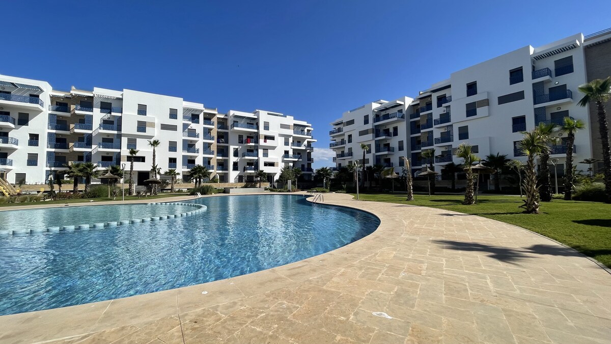Offrez-vous un séjour détente dans cet appartement moderne situé au cœur d’une résidence balnéaire haut de gamme, à seulement 5 minutes de la plage. - 🏖️ Localisation idéale : plage accessible à pied, à proximité des restaurants et cafés - 🏡 Résidence sécurisée avec grande piscine, jardin paysager et parc de jeux pour enfants - 🛋️ Appartement lumineux, climatisé, tout équipé - 🌿 Terrasse privée et balcon pour profiter du plein air en toute tranquillité - 🅿️ Parking privé gratuit