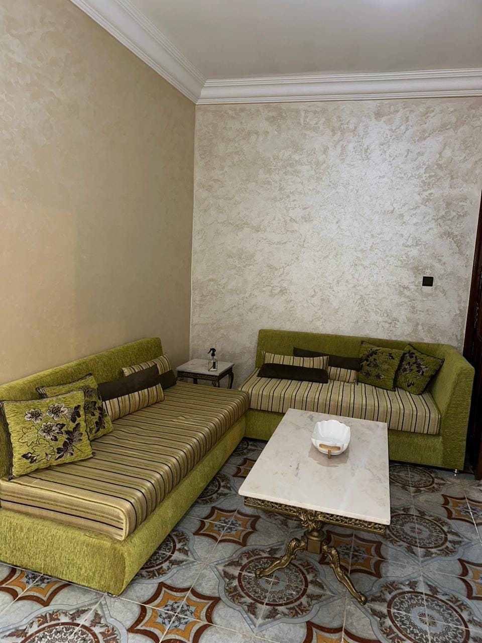 l'appartement se situe au 1er étage dans une résidence calme et sécurisée 24h/24. il est constitué d'une chambre ( lit double+ lit simple), un salon (3 canapés), une salle de bain et une cuisine, ainsi qu'une grande terrasse. l'appartement est bien ensoleillé et lumineux. le quartier s'appelle Mixta Essafia, proche de toutes commodités ( commerces, librairie, mosquée, pharmacie, cafés...) en ce qui concerne la plage, il faut compter 5 mins en voiture ou bien 15 mins à pieds pour y accéder.