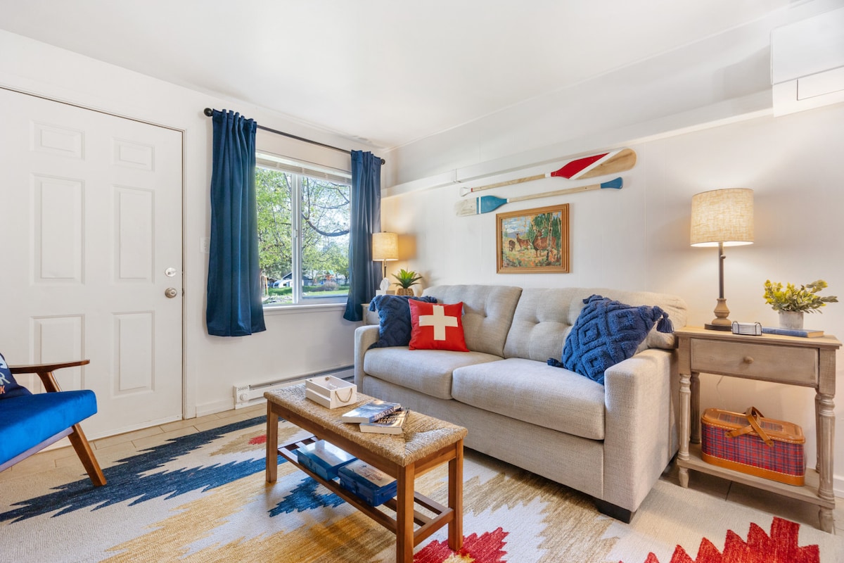 Cow Creek Cabin sits in a peaceful meadow with a gorgeous view of Big Mountain. It is just two miles to downtown Whitefish and 15 minutes to the ski hill. This tranquil Montana setting is an ideal base for adventures in Whitefish. The cabin features vast windows bringing the mountain vista inside. A wood-burning stove awaits your return from a day on the slopes or trails. The kitchen is stocked with everything you need to cook your own meals. The OLED TV is connected to fast Starlink internet.