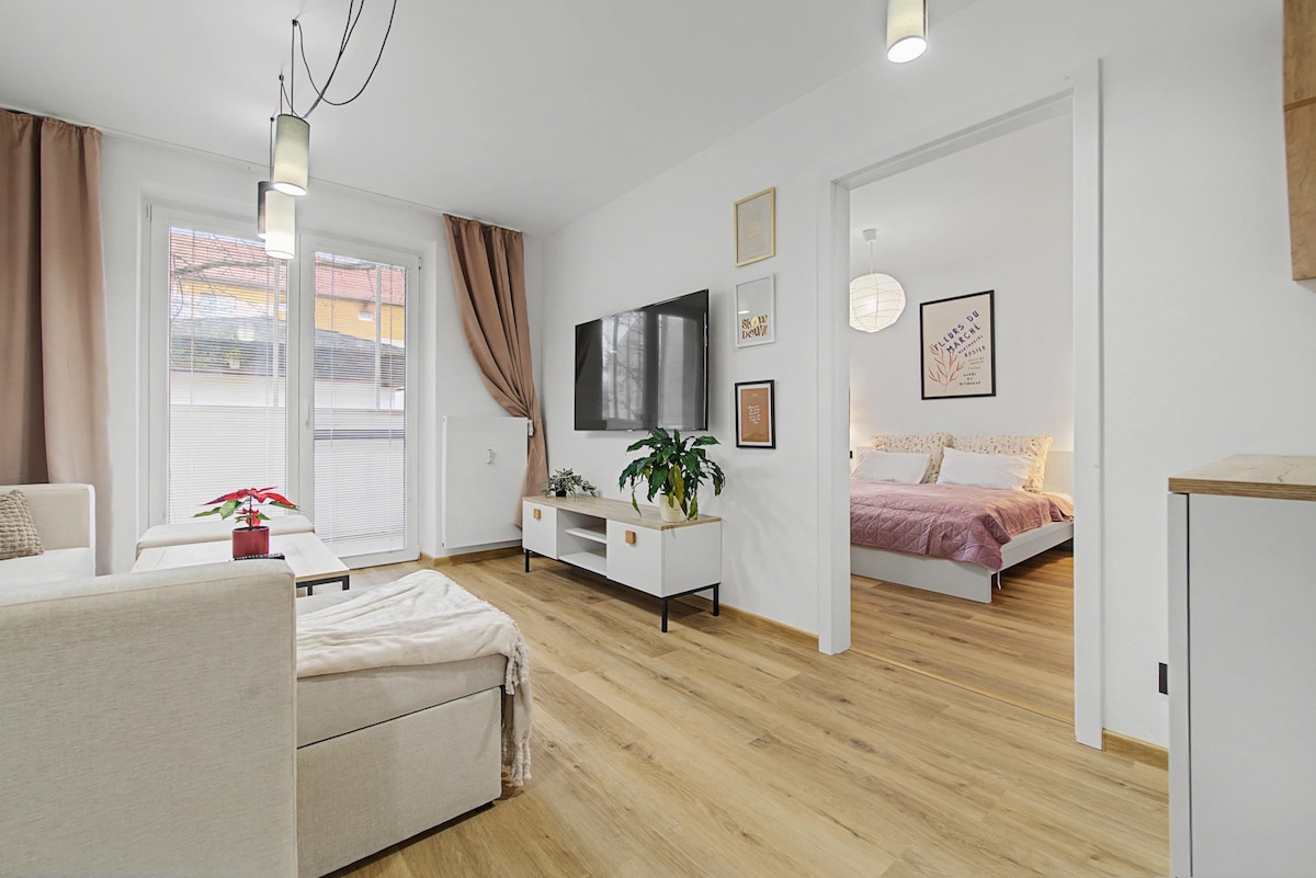 Dajte si pauzu a odpočiňte si v tejto oáze pokoja.Ponúkame Vám plne vybavený byt v tichej lokalite, kde si môžete úplne oddýchnuť od starostí. S vlastným kúrením a parkovacím miestom, blízko centra mesta, je náš byt ideálnym miestom na váš pobyt. Vychutnajte si súkromie oddelenej kúpeľne a relaxujte na priestrannom slnečnom balkóne. Byt je vhodný pre rodiny a skvelým východiskovým bodom na výlety po okolí.