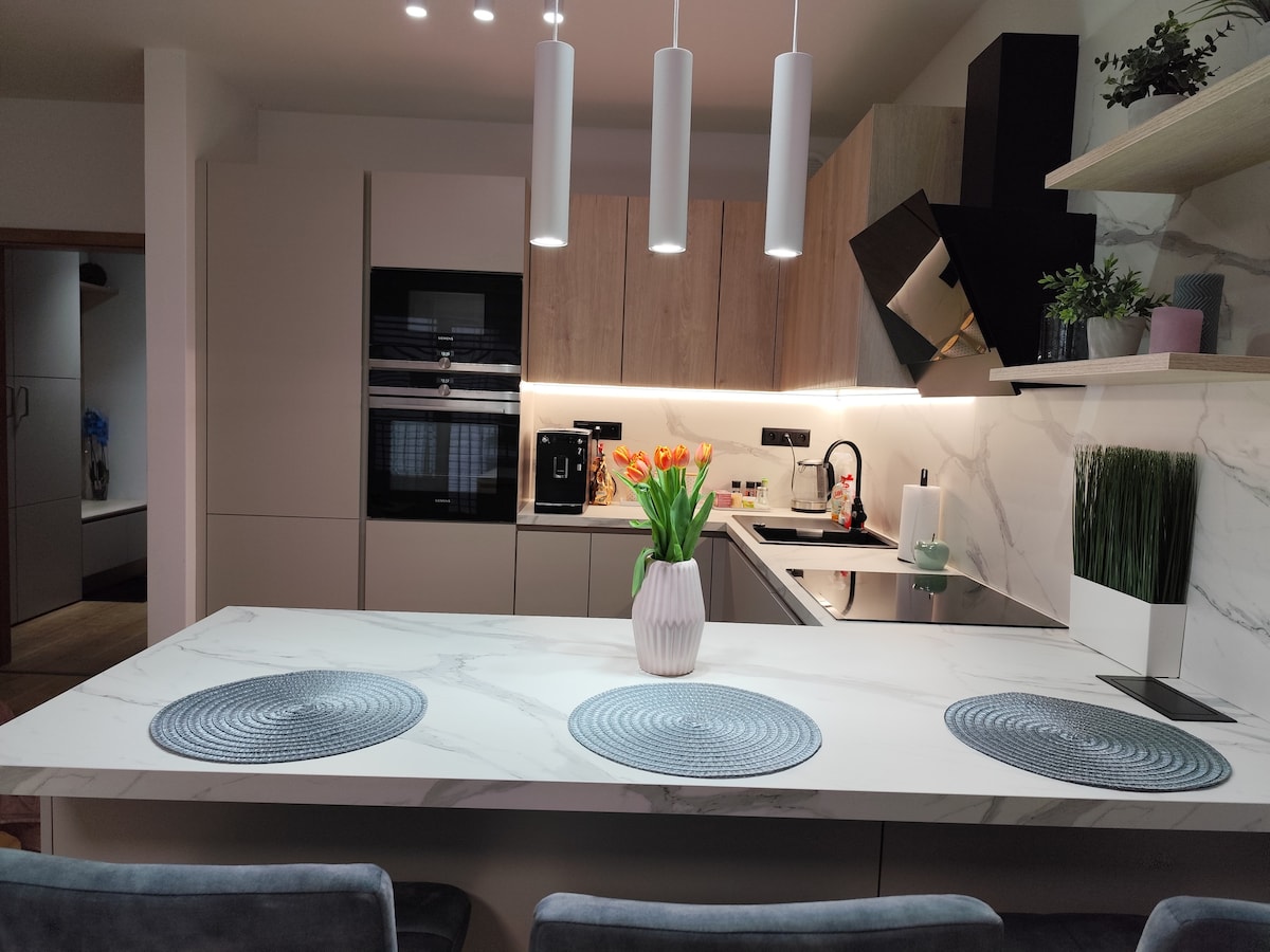 Relax in a modern and fully furnished apartment in a quiet location of Hliny-Zilina with parking nearby. You will have the whole apartment to yourself. The apartment is located on the 8th floor with a nice mountain view balcony and shops near.