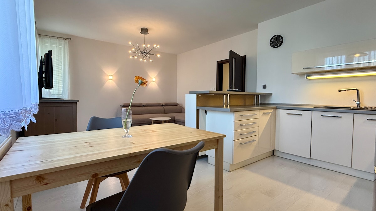 Pozývam Vás do moderného 1-izbového apartmánu, ktorý sa nachádza len 9 minút chôdze od hlavného námestia v Martine. Kompletne zariadený, s vybavenou kuchyňou, základnými potrebami na varenie aj pranie. Dvojlôžková posteľ pre váš komfortný spánok, smart TV a WIFI. Loggia s výhľadom na Malú Fatru. Bezplatné parkovanie priamo pred bytovým domom a celé centrum mesta dostupné v pešej vzialenosti. Byt je ideálny pre jednotlivcov, páry alebo biznis cestujúcich, ktorí hľadajú bývanie v Turci.