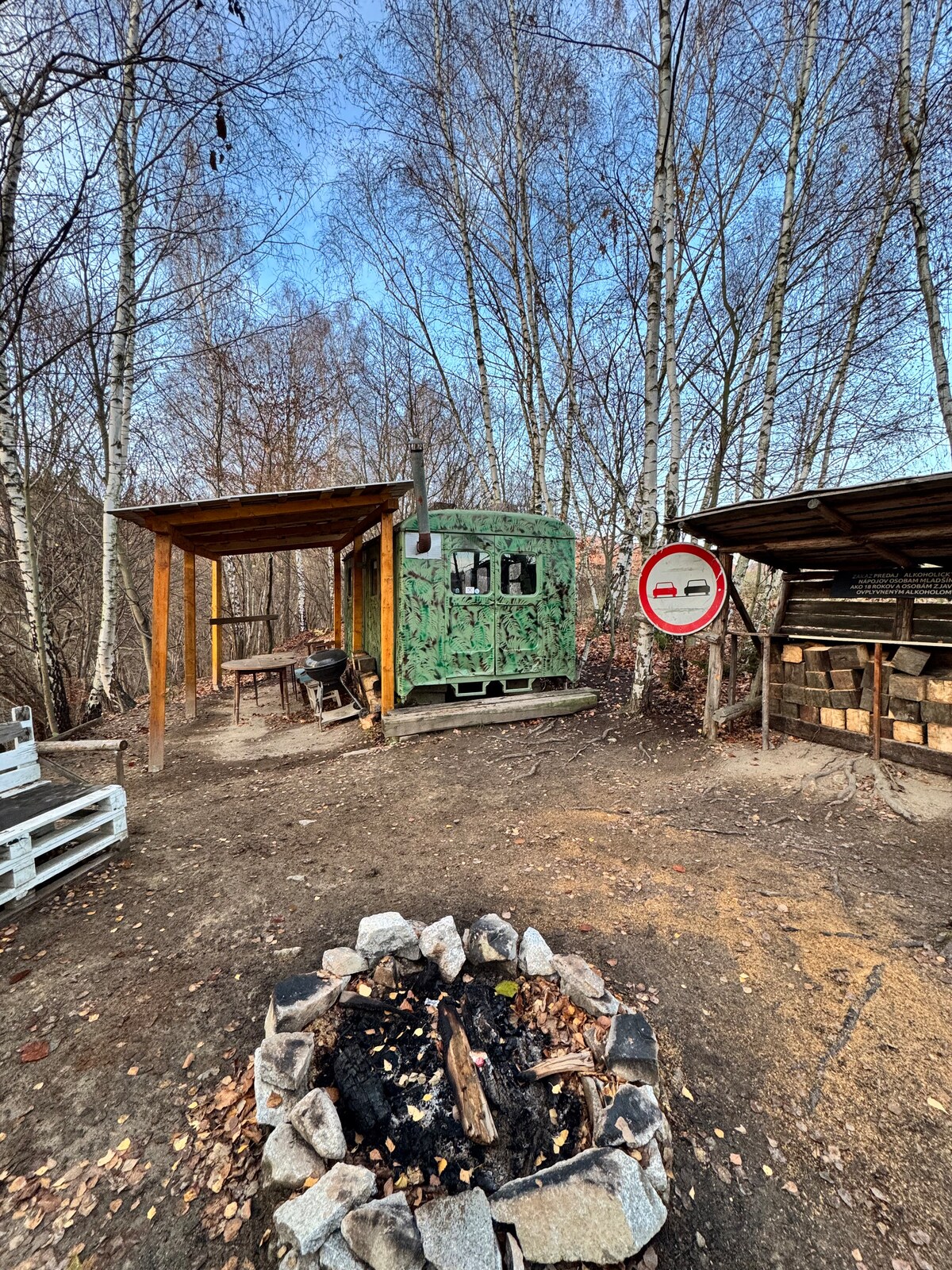 A unique stay in Maringotka on the edge of a forest and a meadow is an ideal place for those looking for an escape from civilization. No electricity, water and weak signal. Great place for a digital detox or meditation. Ideal for adventurers, romantic souls, but also for those looking for complete isolation. You can go hiking in the nearby area or just enjoy undisturbed moments by the fire. It’s hidden on the edge of forest and meadow. 600m, approx 10 minutes from the shooting range in Turany.