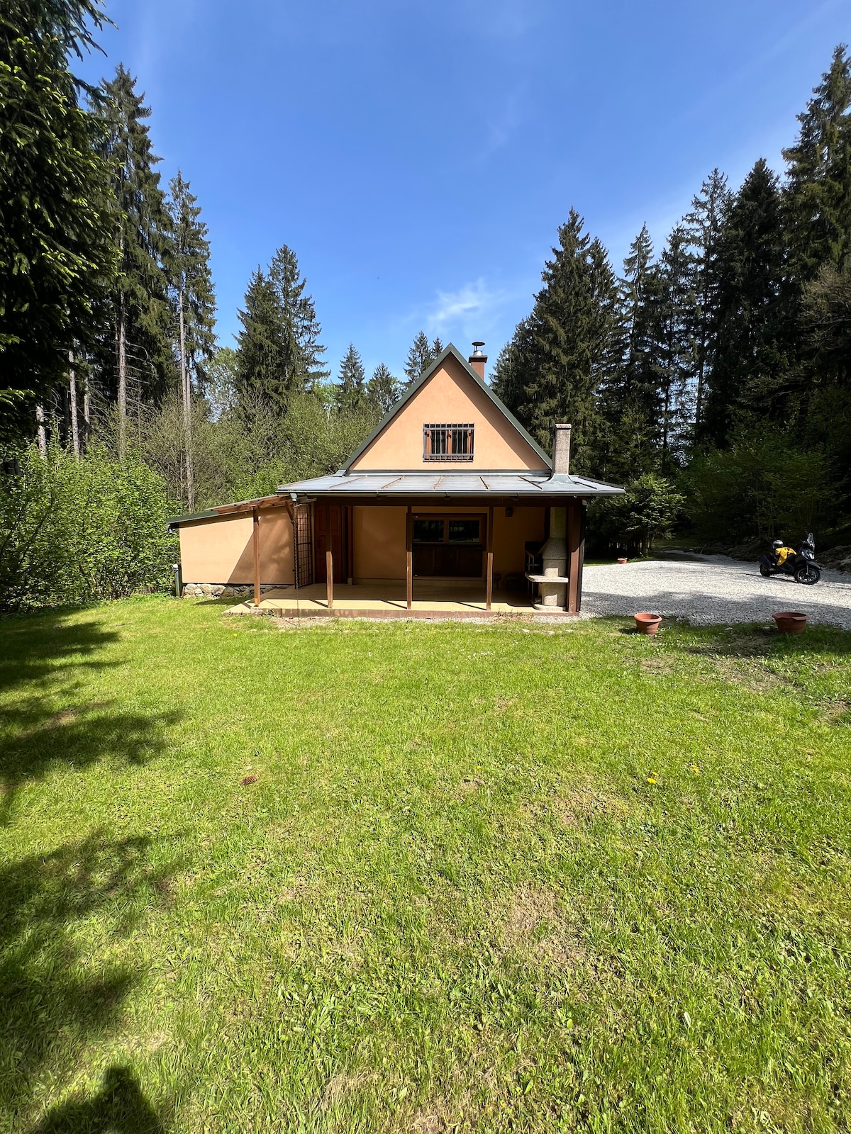 ✔Terasa s posedením ✔ Komfort a teplo: vyhriata chata, automatické elektrické radiátory a krb pripravený na použitie. ✔ Espresso kávovar a umývačka riadu🏡 ✔ Priestranná chata pre 8 osôb s 2 spálňami, veľkou obývačkou, plne vybavenou kuchyňou so sporákom a chladničkou, kúpeľňou. ✔ Vybavenie pre rodiny: detská postieľka, vysoká stolička, hračky, trampolína a futbalové bránky. ✔ Zábava a relax: Smart TV, Netflix, 120 programov, stolný futbal, záhrada s ohniskom a grilom, V cene 4 horské bicykle🚵!