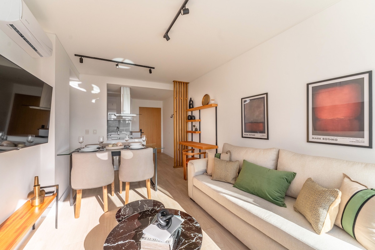 Welcome to Palermo Soho, the heart of Buenos Aires! This totally new luxurious apartment is equipped with top modern appliances & furniture: Smart TV 65”, 2 ACs, laundry machine, rain shower, custom sofa, Nespresso machine, handcrafted table, you name it… The building itself is a brand new complex with full amenities. (Garage, rooftop pool, outside BBQ etc.) We sincerely hope that you will enjoy your stay in probably the best location of the whole city of Buenos Aires!