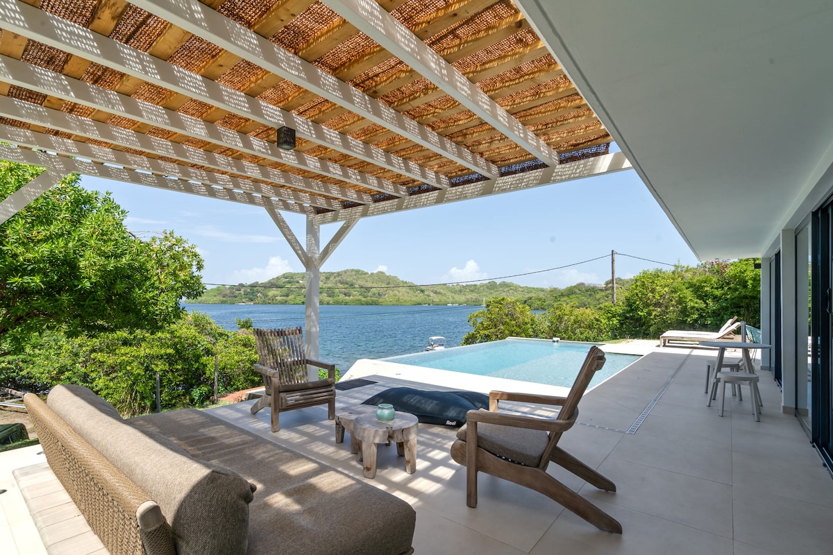 La villa Amara 2 se niche dans le Domaine d'Amara, un lieu privé et sécurisé où la vue sur la mer des Caraïbes est à couper le souffle. La villa construite en 2025 est tres spacieuse (500m2) incluant une très grande terrasse de 200m2 avec une piscine à débordement de 11m x 4m d'où l'on peut voir chaque soir le coucher de soleil sur la mer ! La villa est meublée de façon moderne et fonctionnelle, très bien décorée avec ses 4 grandes chambres, chacune avec salle de bain privée.