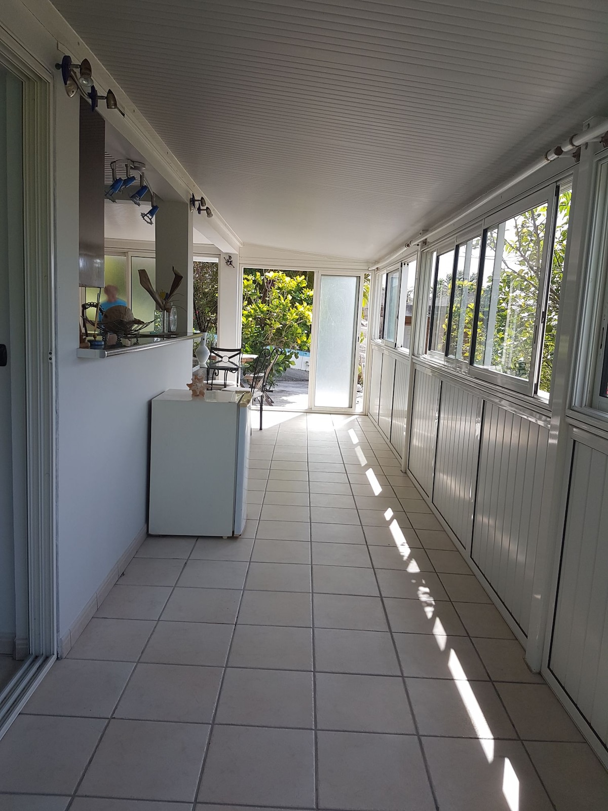 La villa est située dans un jardin tropical de 6 Ha , face a l ' Ocean , à 10 mn a pied de la plage, avec une piscine de 25 m en copropriete Vous pourrez prendre vos repas sur la terrasse, avec vue sur la mer. La villa est composée d'une grande pièce a vivre ( salon avec canapé convertible, salle à manger , cuisine américaine), de 2 chambres climatisées ,d'une salle de bain, WC indépendant. L 'acces se fait par un escalier dune trentaine de marche , à partir du parking
